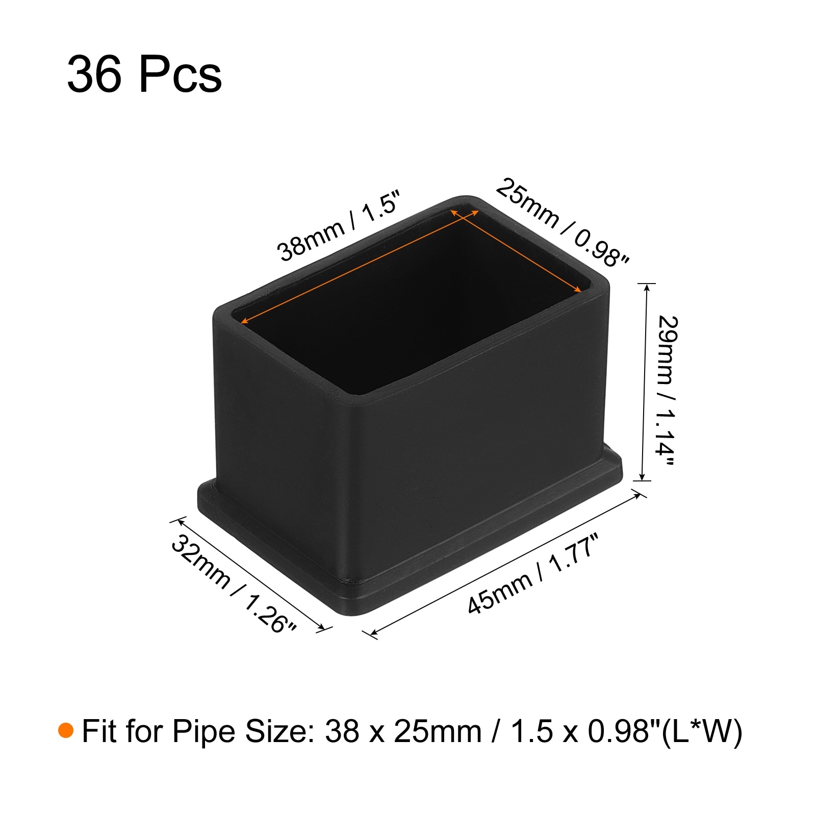 26Pcs Square Chair Leg Caps, 16mm x 16mm OD Black Furniture Feet Pads