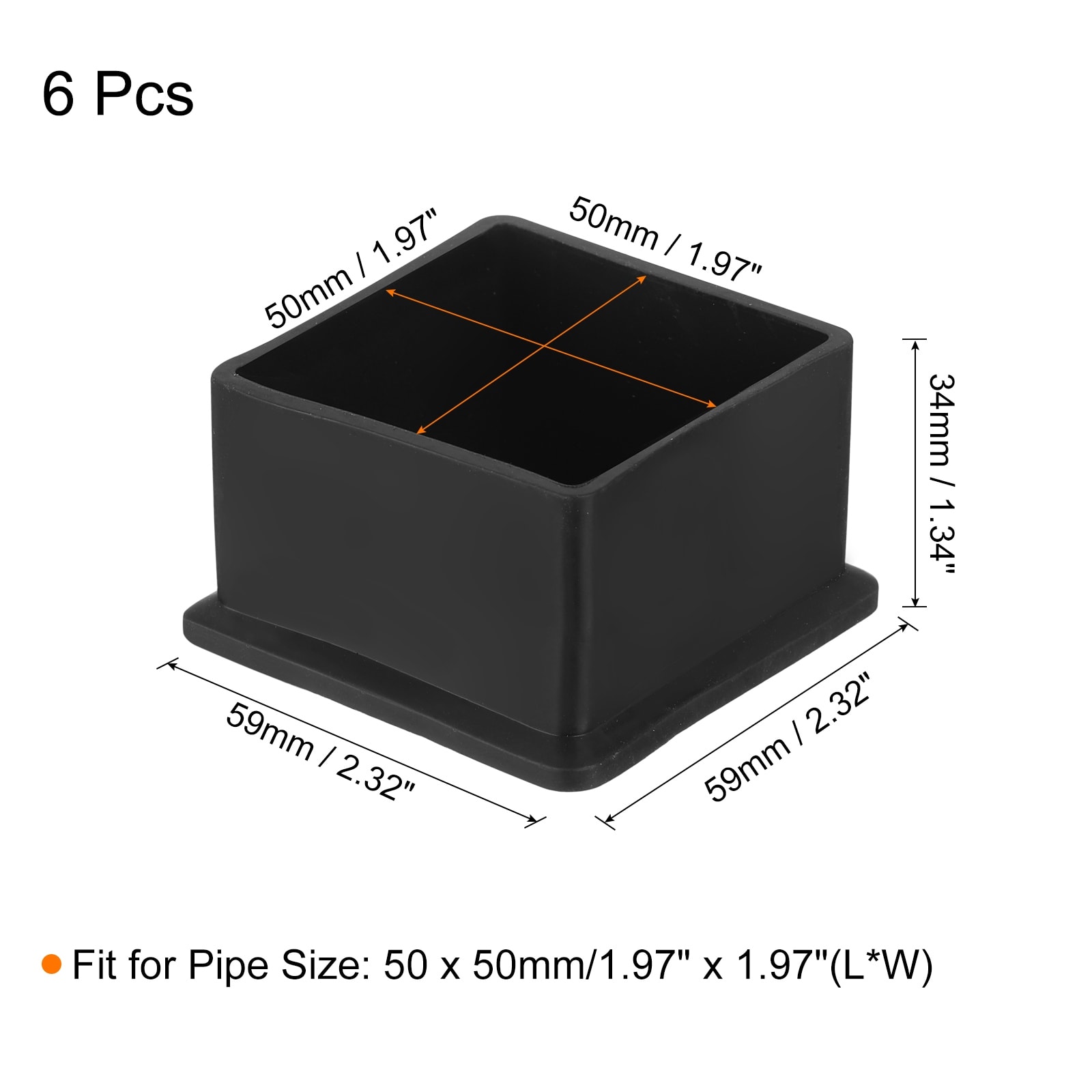 26Pcs Square Chair Leg Caps, 16mm x 16mm OD Black Furniture Feet Pads