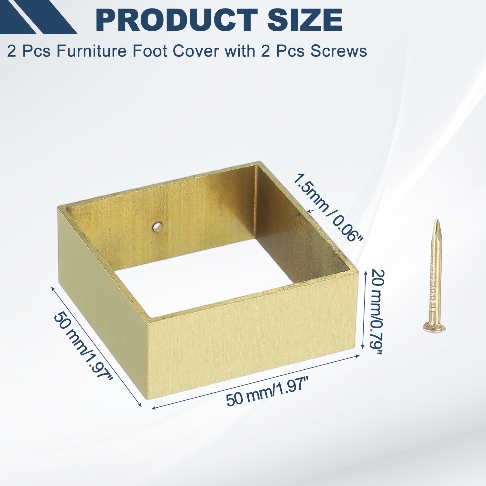 2 Pcs Brass Furniture Foot Cover, 1.06 x 1.18 x 0.79 Inch Square Furniture Cap - gold