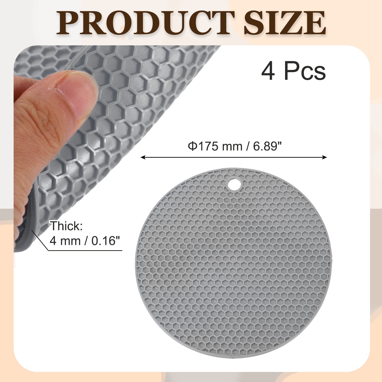 4 Pcs 6 Inch Silicone Trivets Mat Pot Holder Round Hot Pad Mat Black