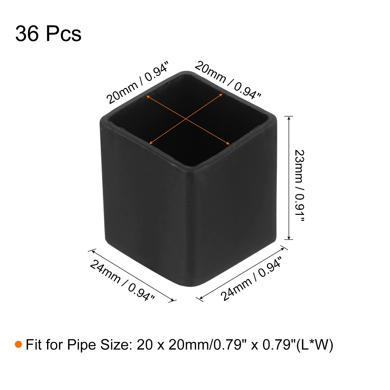 26Pcs Square Chair Leg Caps, 16mm x 16mm OD Black Furniture Feet Pads