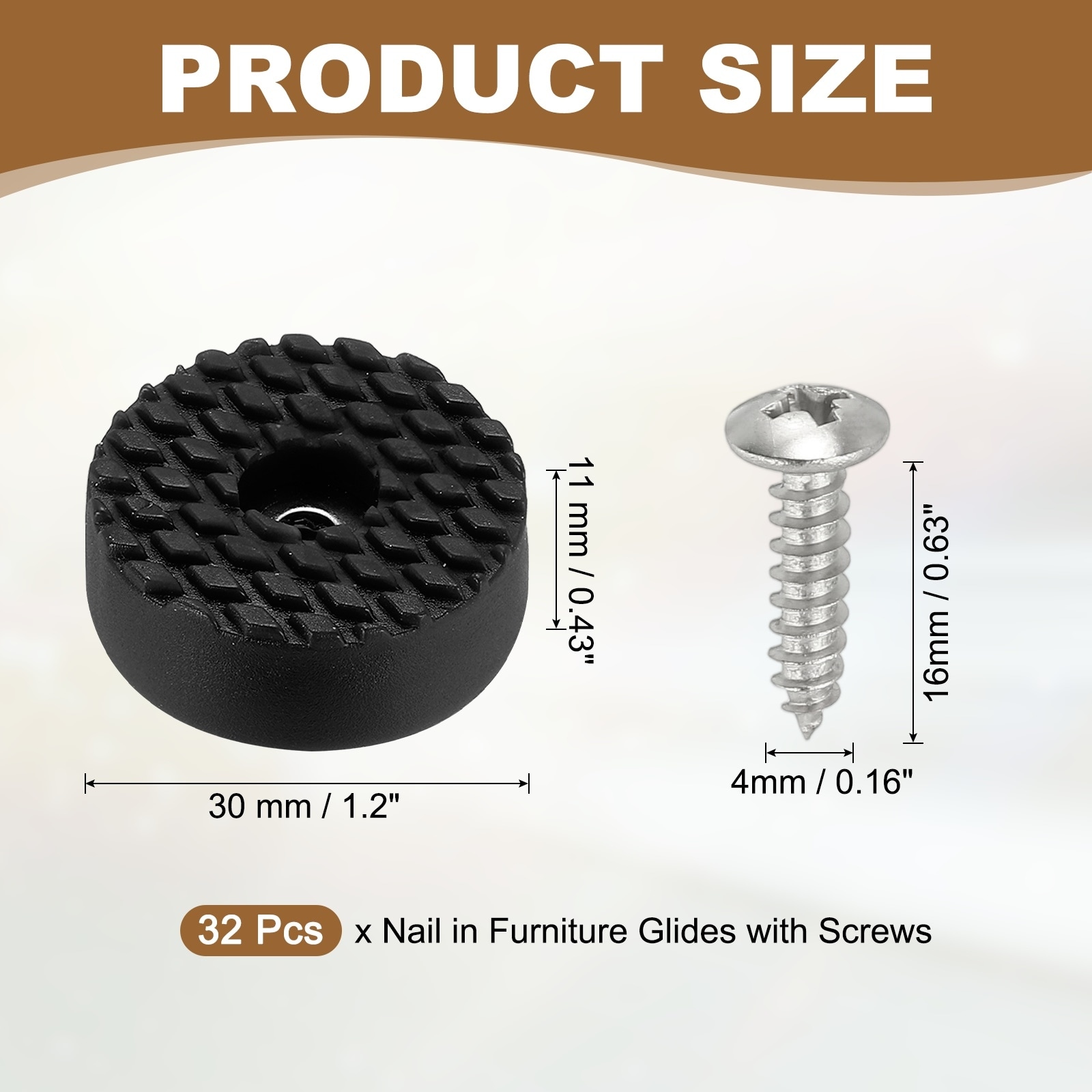 32Pcs 0.7" Screw-On Rubber Feet Non Slip Furniture Pads Chair Glides Black