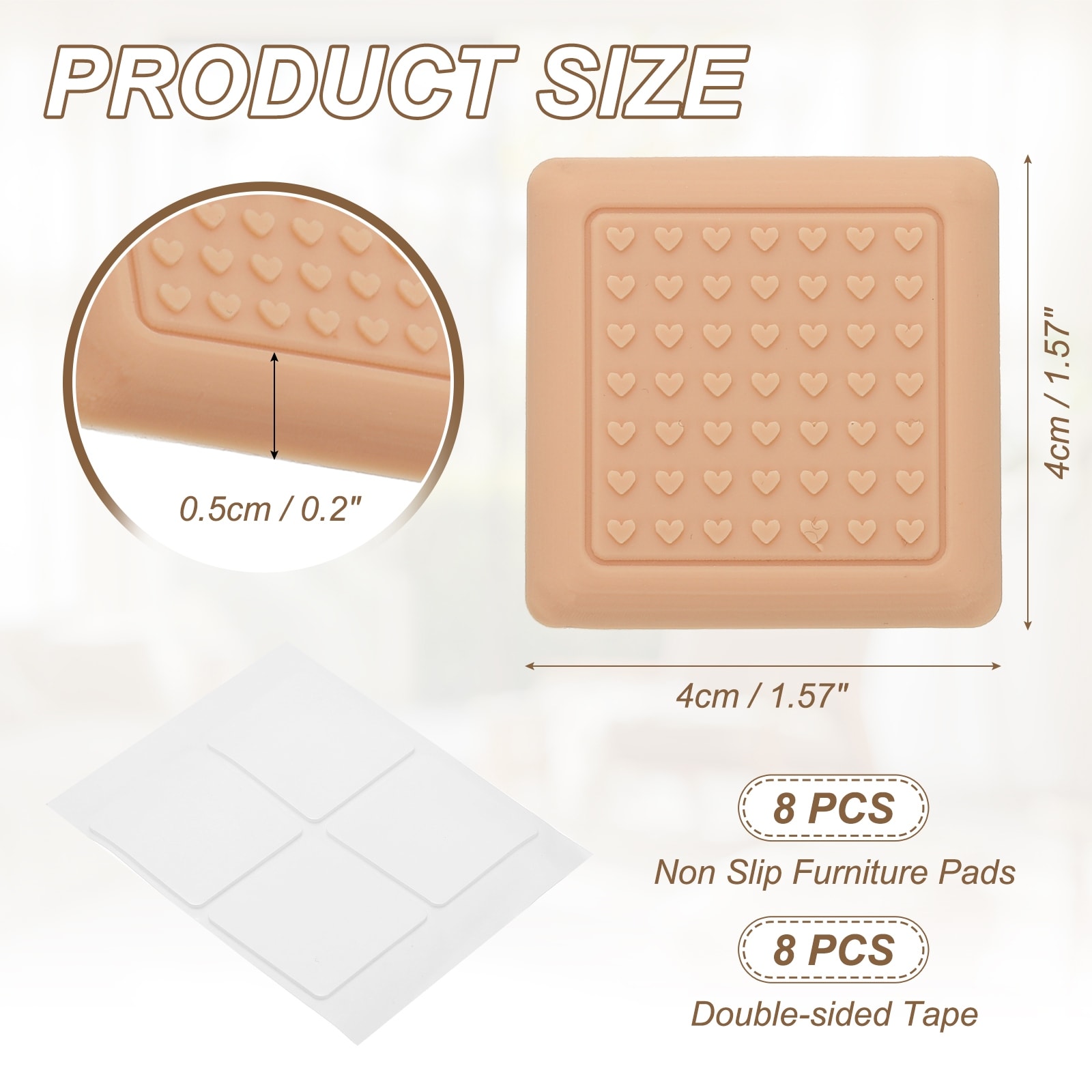 1.2 Inch Non Slip Furniture Pads, 8 Pcs Square Rubber Caster Cups, White