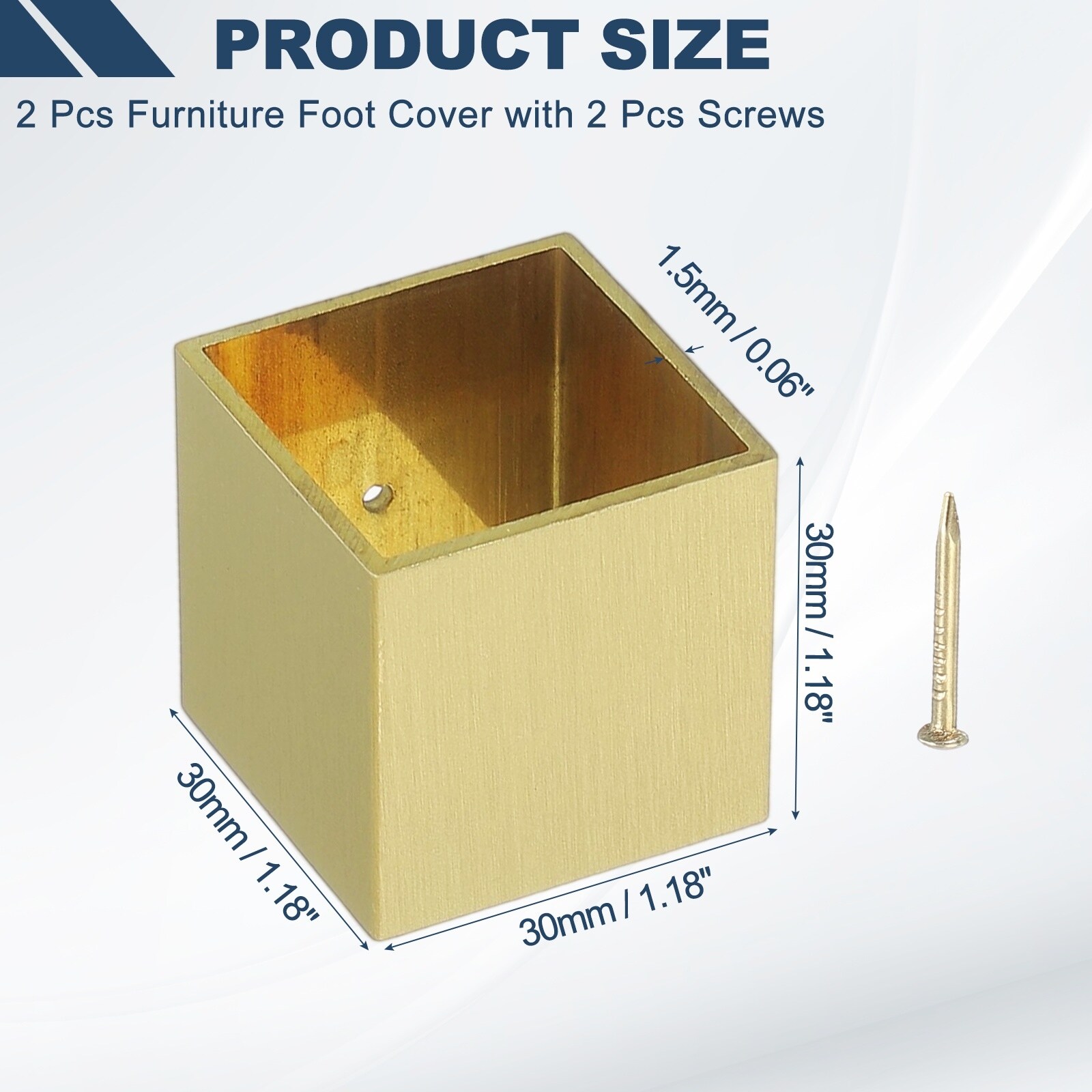 2 Pcs Brass Furniture Foot Cover, 1.06 x 1.18 x 0.79 Inch Square Furniture Cap - gold