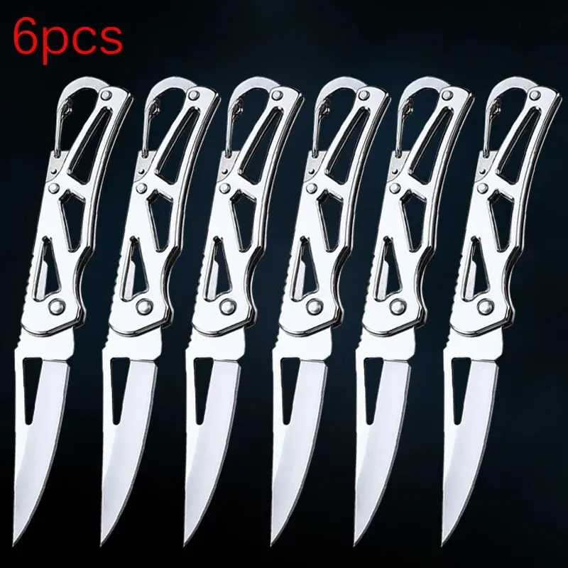Folding Fruit Knife, Stainless Steel Pocket Knife With Keychain Non Slip Handle For Travel & Home 6pc