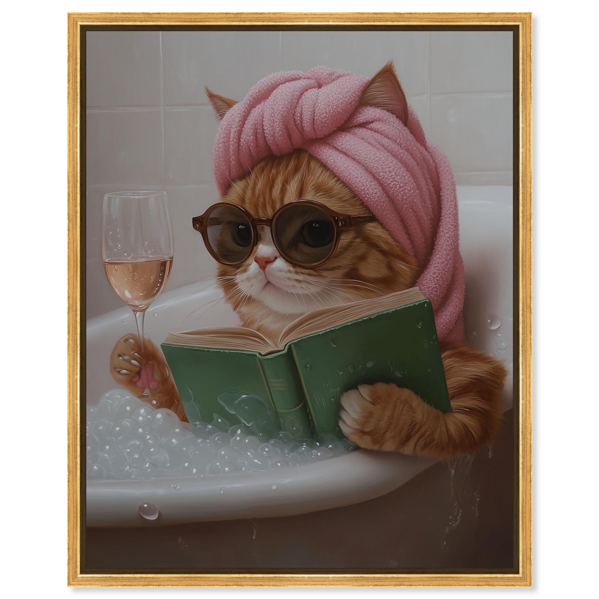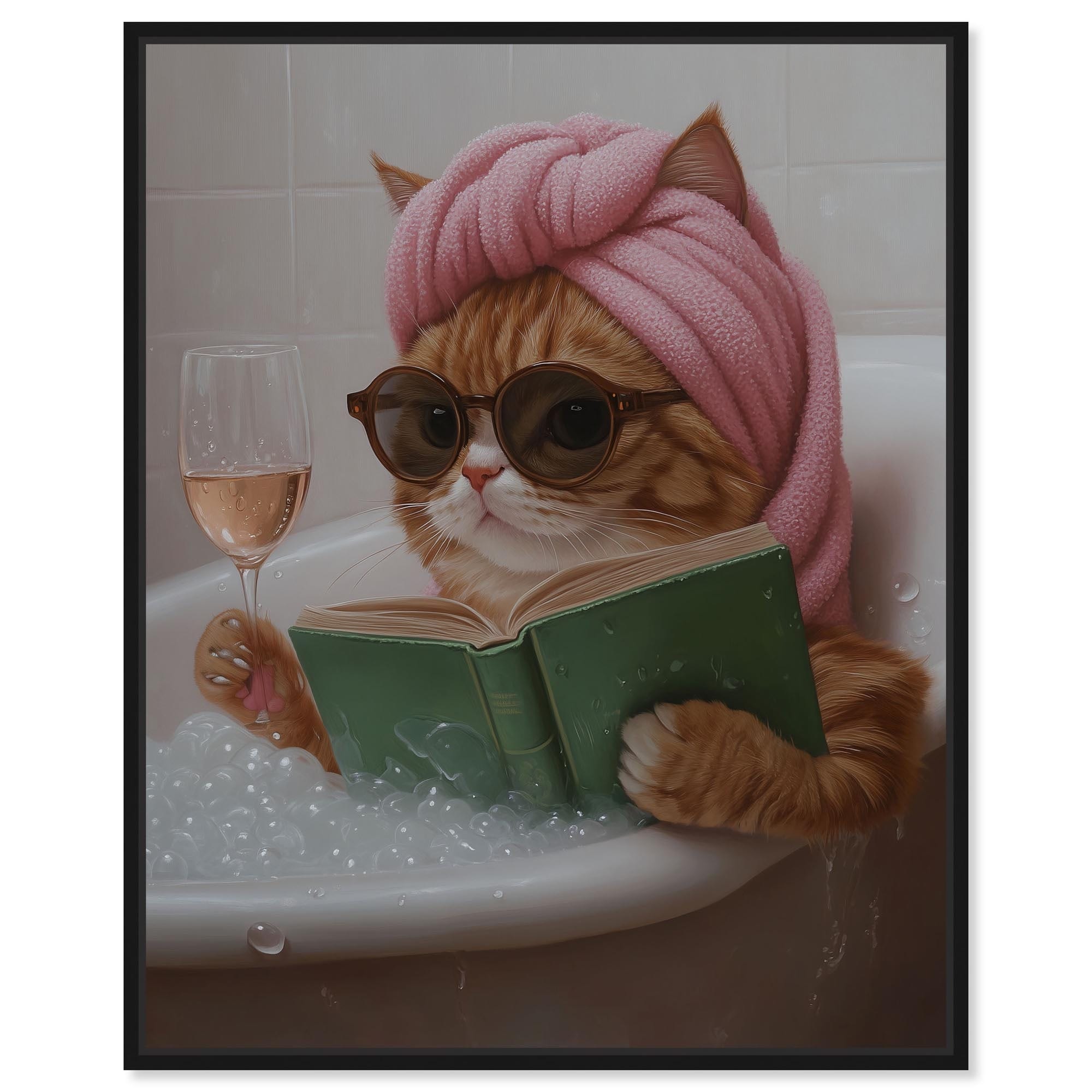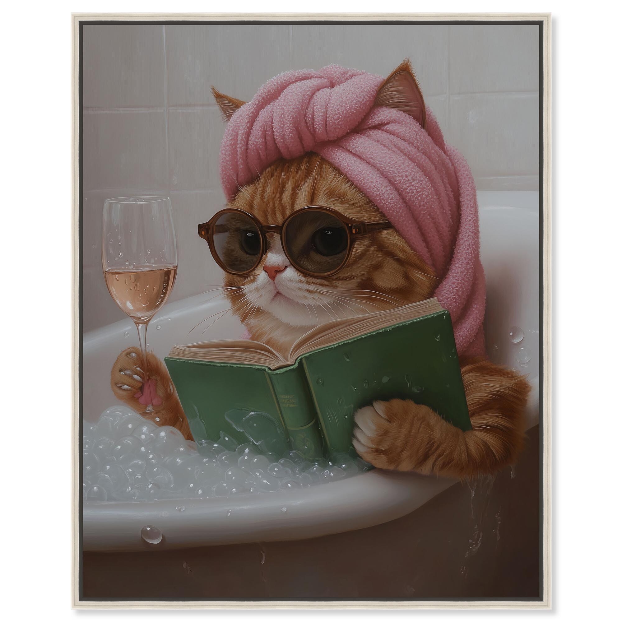Bubbles and Cat Fun Bathroom Art Framed Canvas Print by Art Remedy
