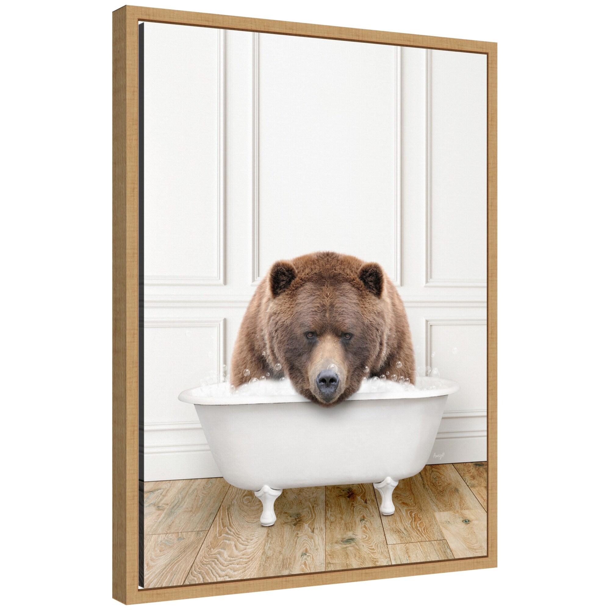 Kate and Laurel Sylvie Big Bear in Traditional Vintage Bathtub Framed Canvas by Amy Peterson
