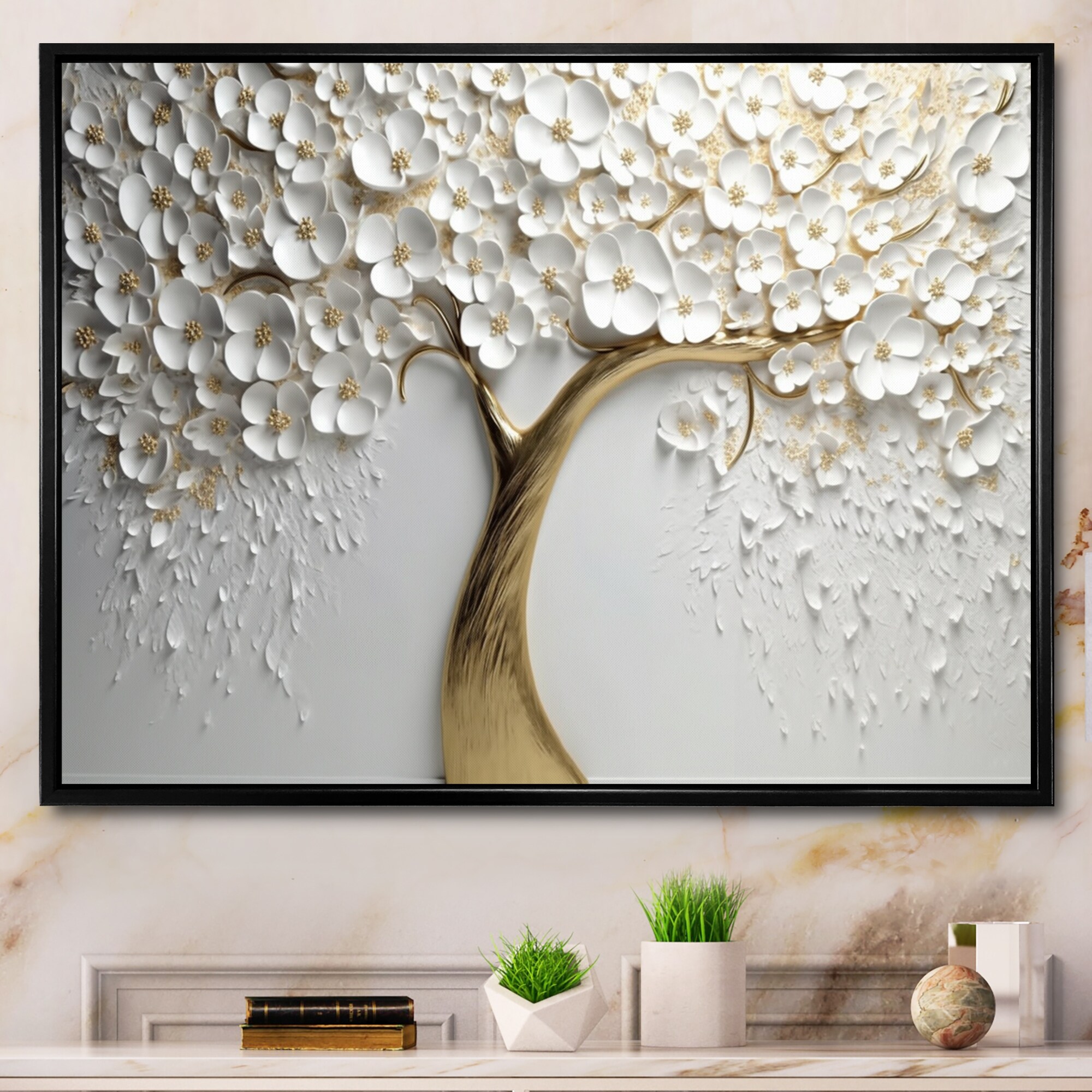 Designart "White Orchid Tree Garden Of Branches V" Tree Floral Framed Canvas Art Print