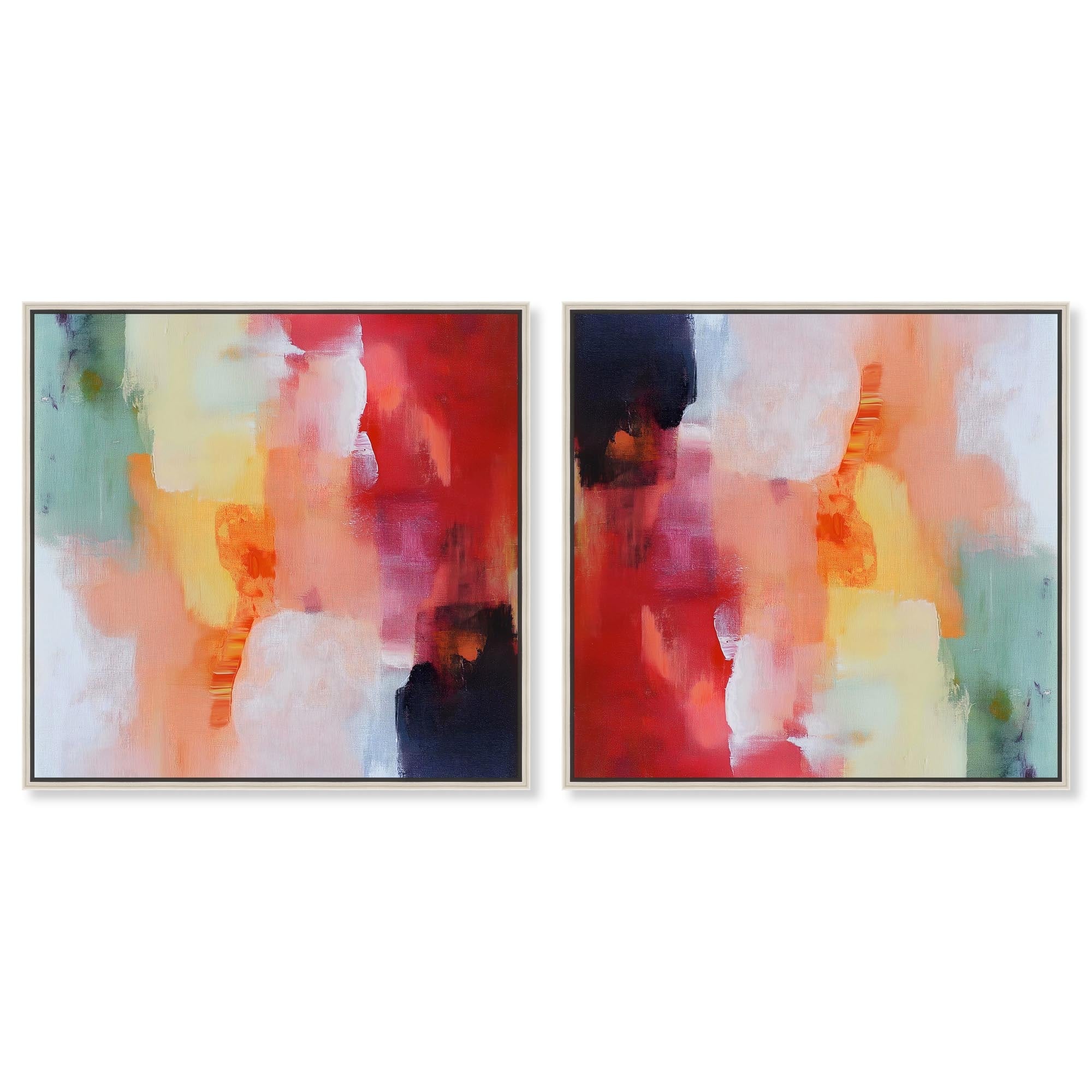 Designart "Red Grey Botanical Symphony I" Abstract Botanicals Framed Canvas Wall Art