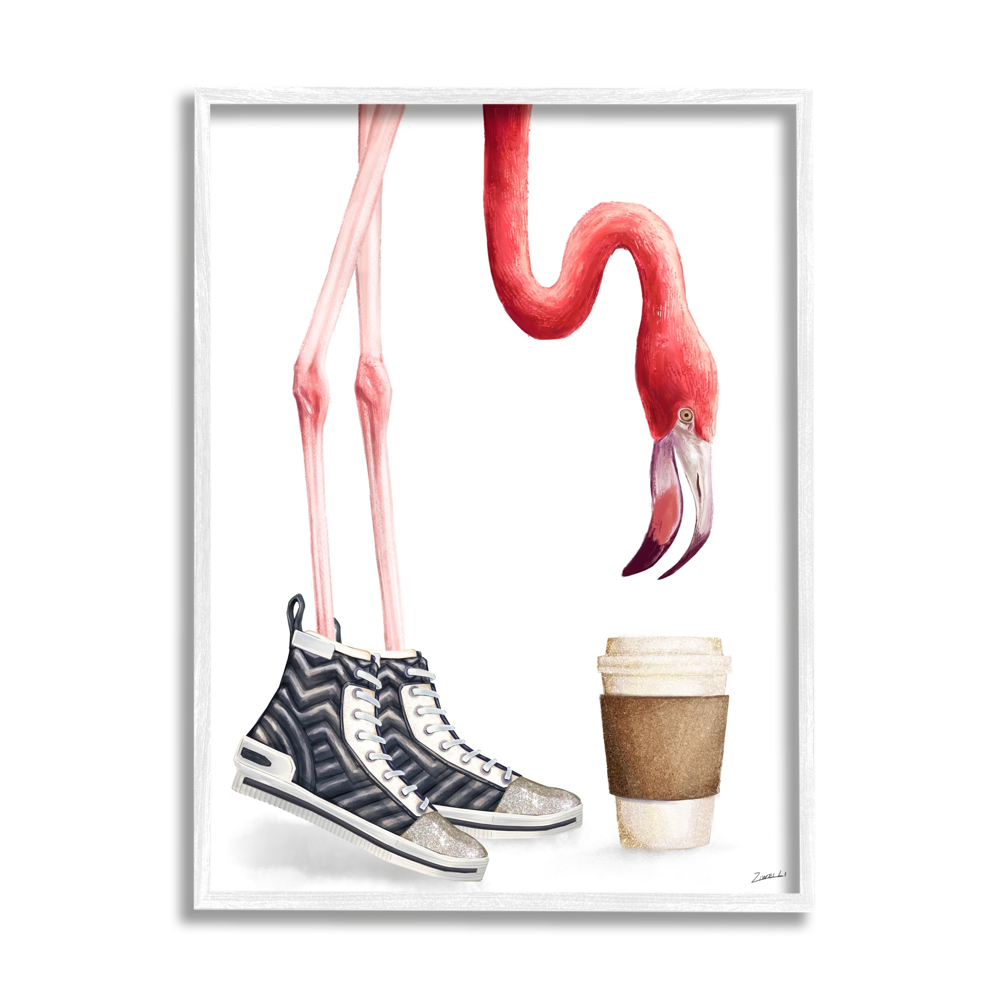 Stupell Fashion Quilted Shoe Glam Pink Flamingo Coffee Cup Framed Wall Art