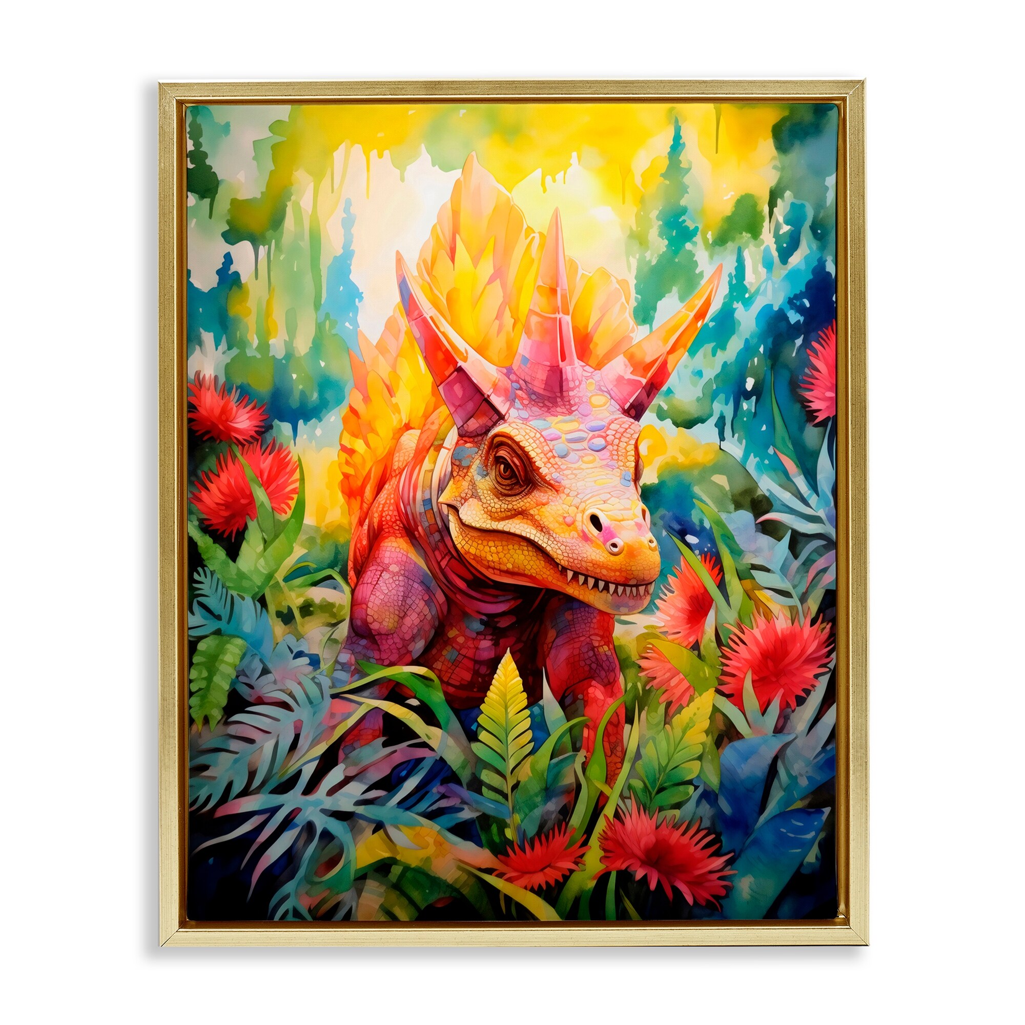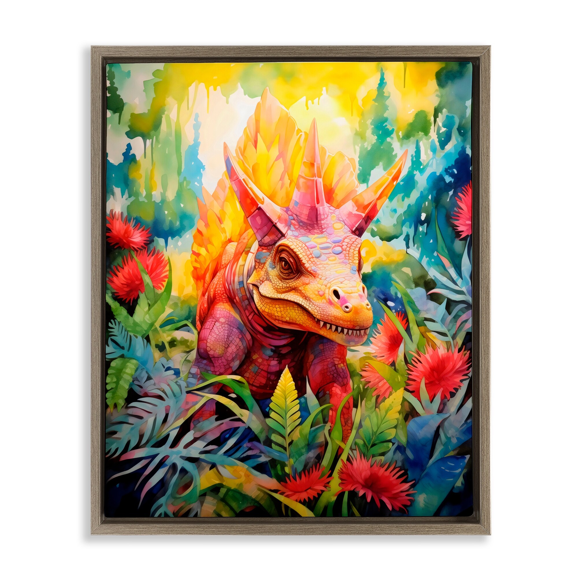 Stupell Colorful Dinosaur in Jungle Framed Floater Canvas Wall Art Design By Creative Studio