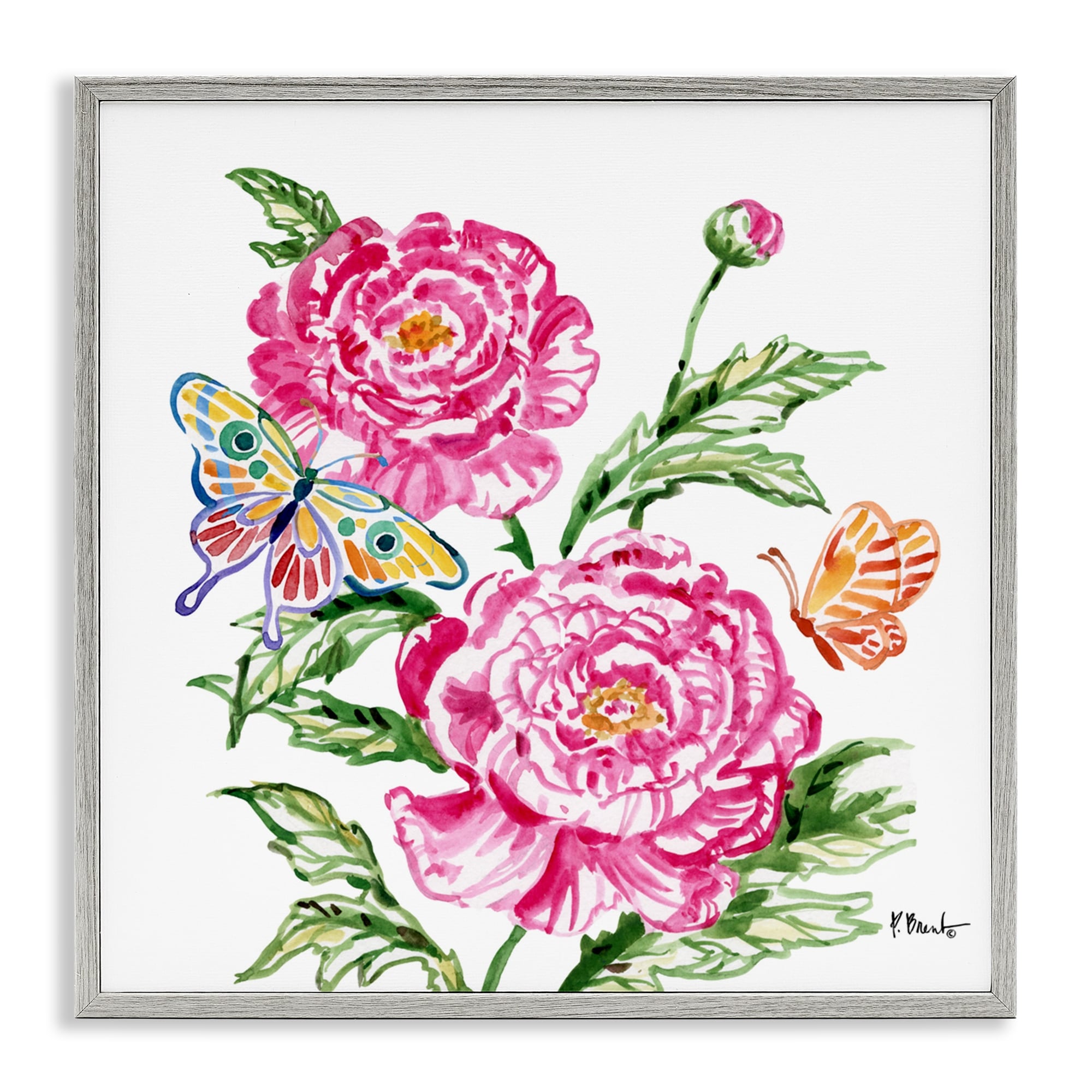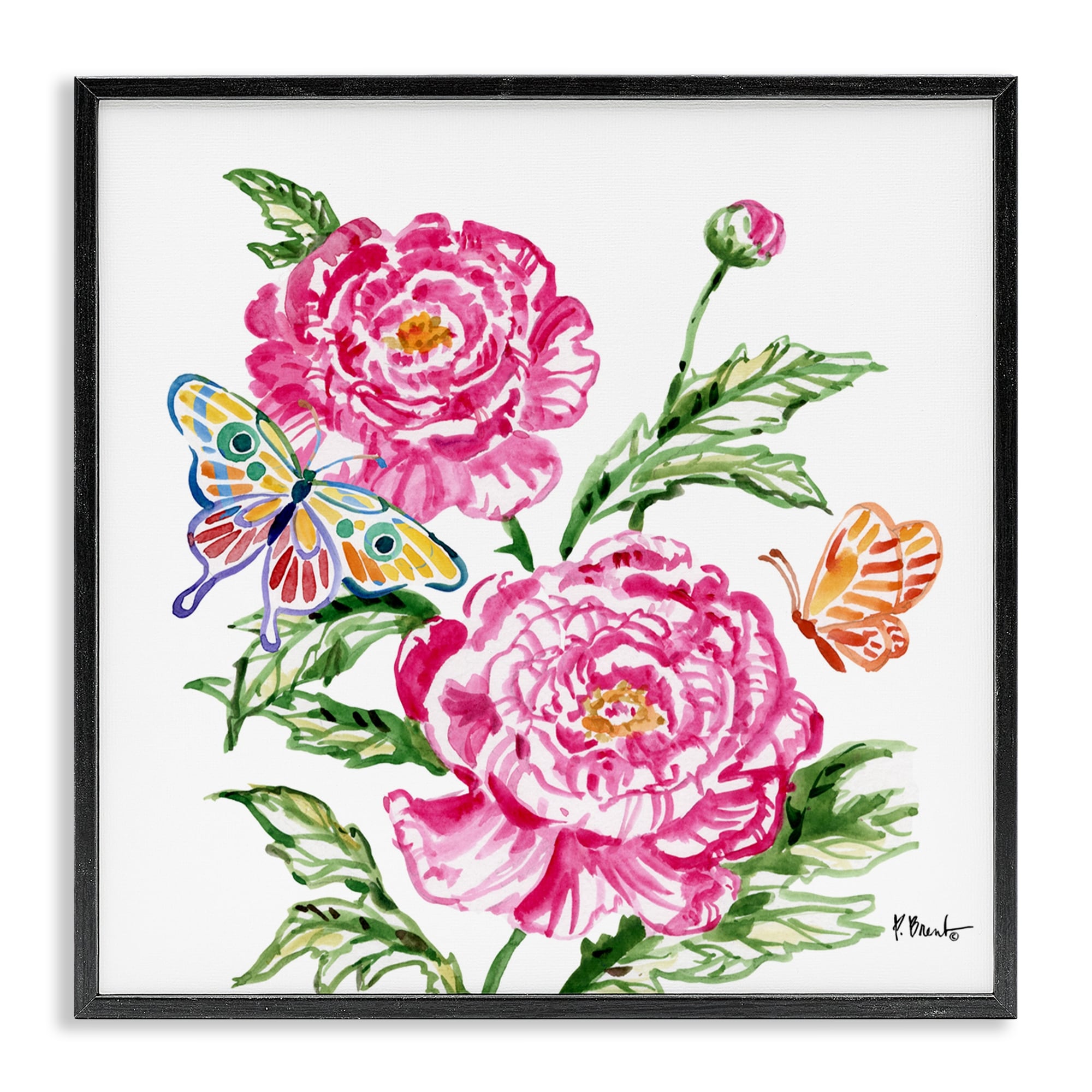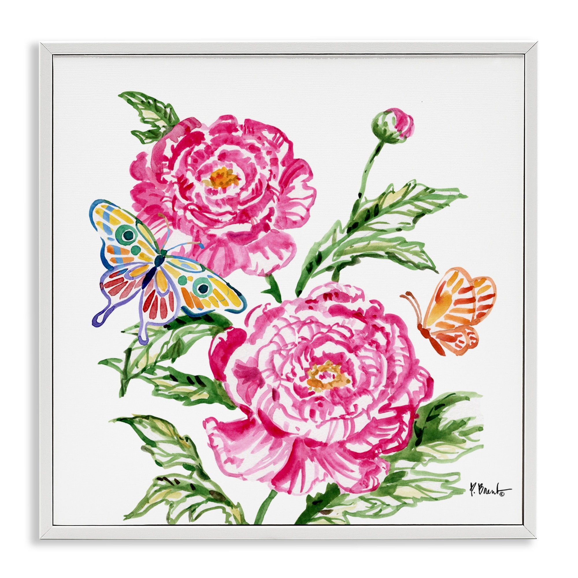 Stupell Brushstroke Peonies & Butterflies Framed Giclee Art Design By Paul Brent