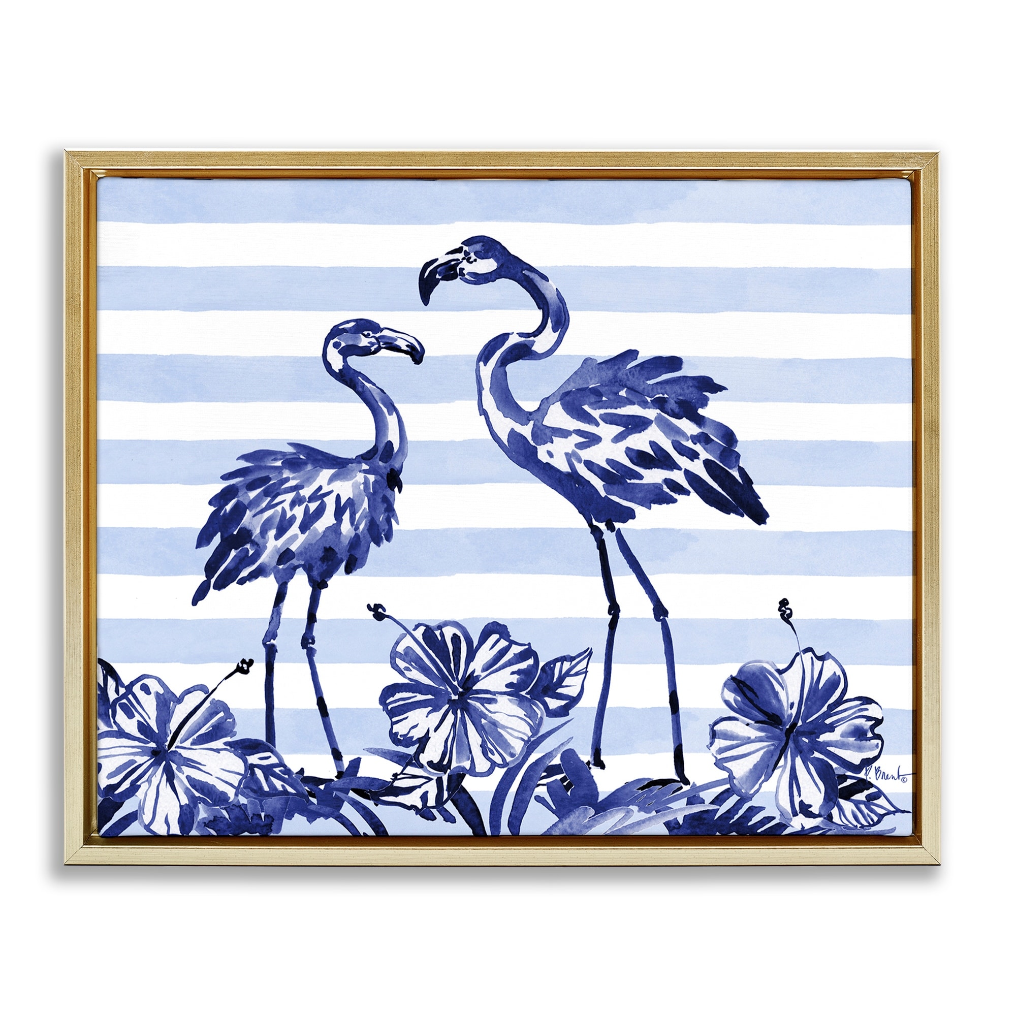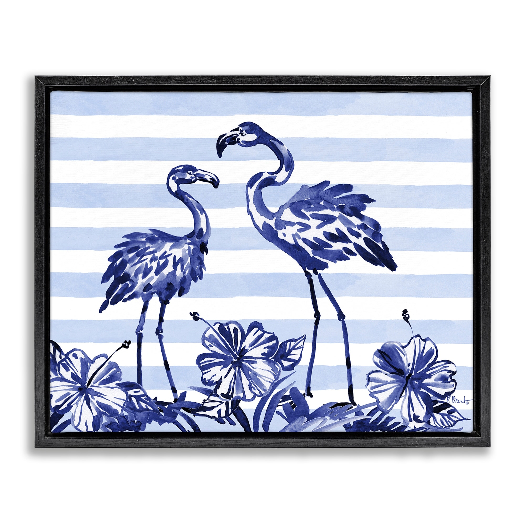 Stupell Indigo Flamingos over Stripes Framed Floater Canvas Wall Art Design By Paul Brent