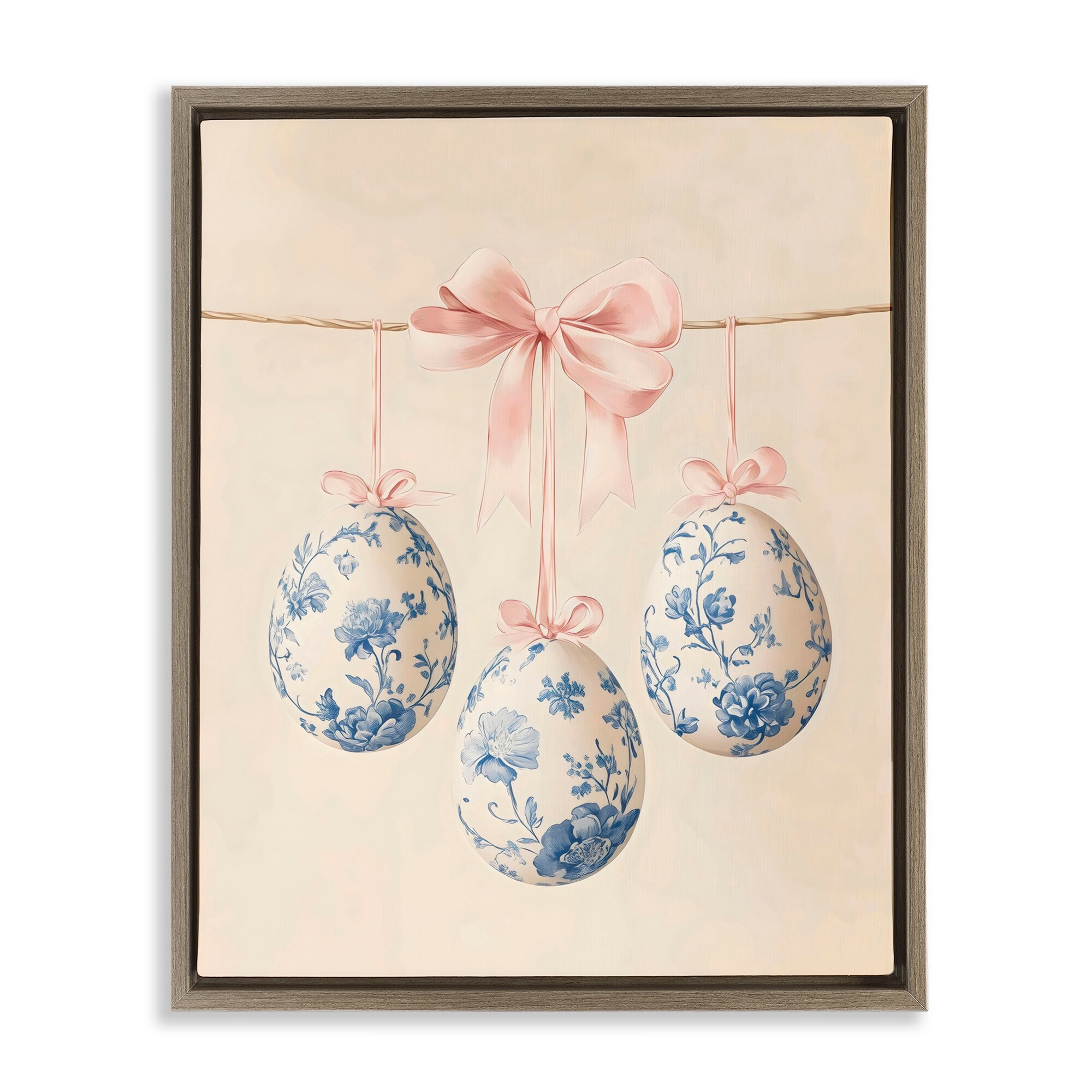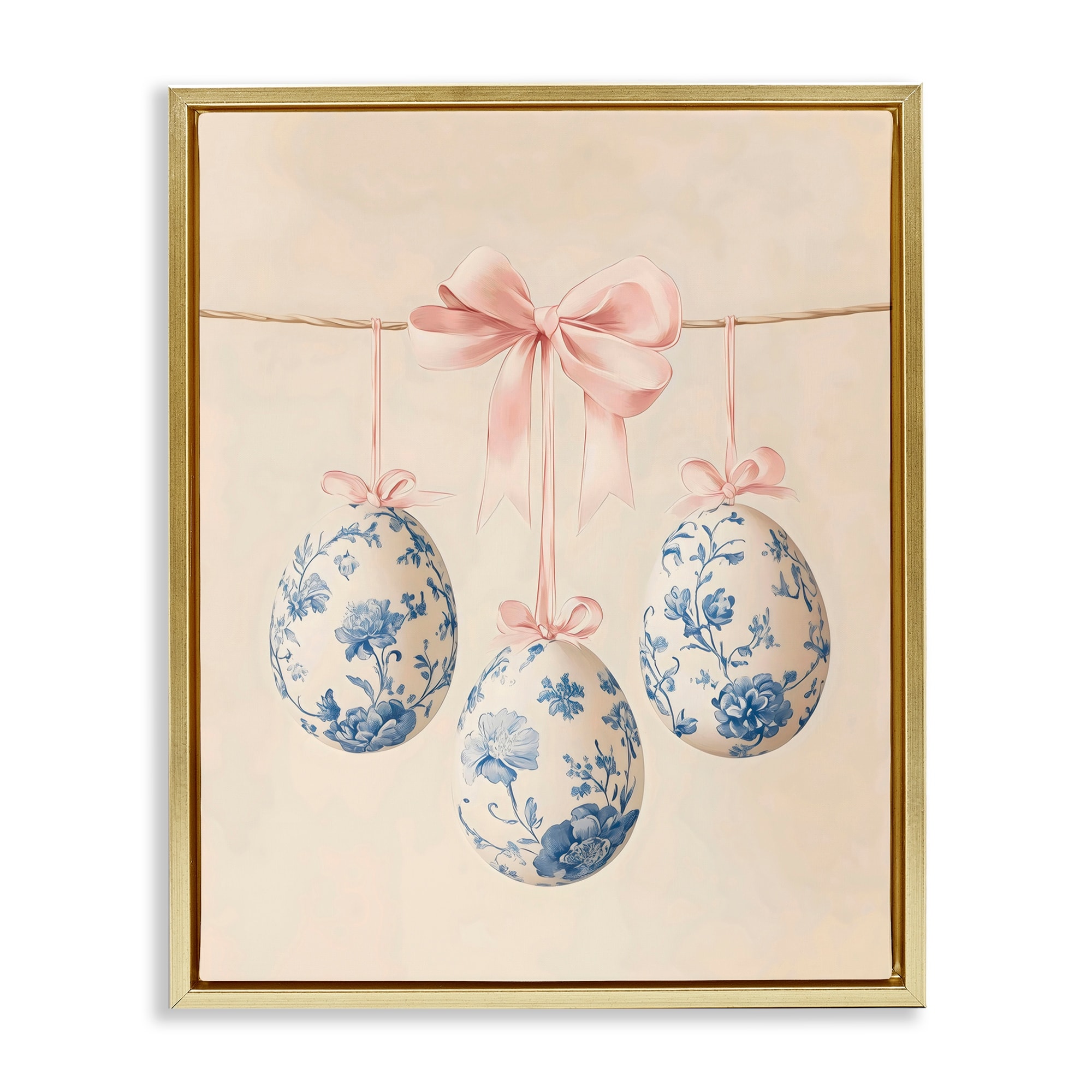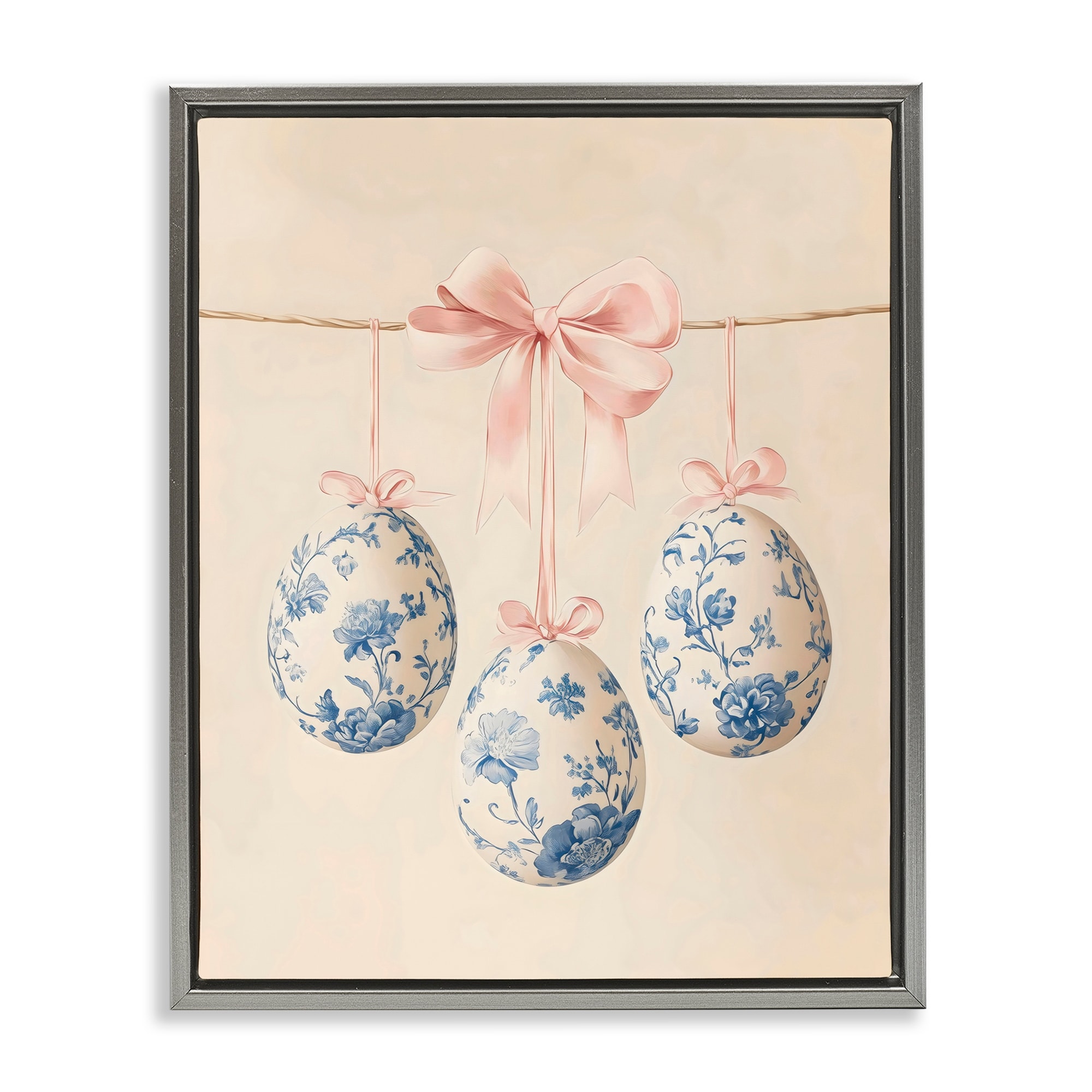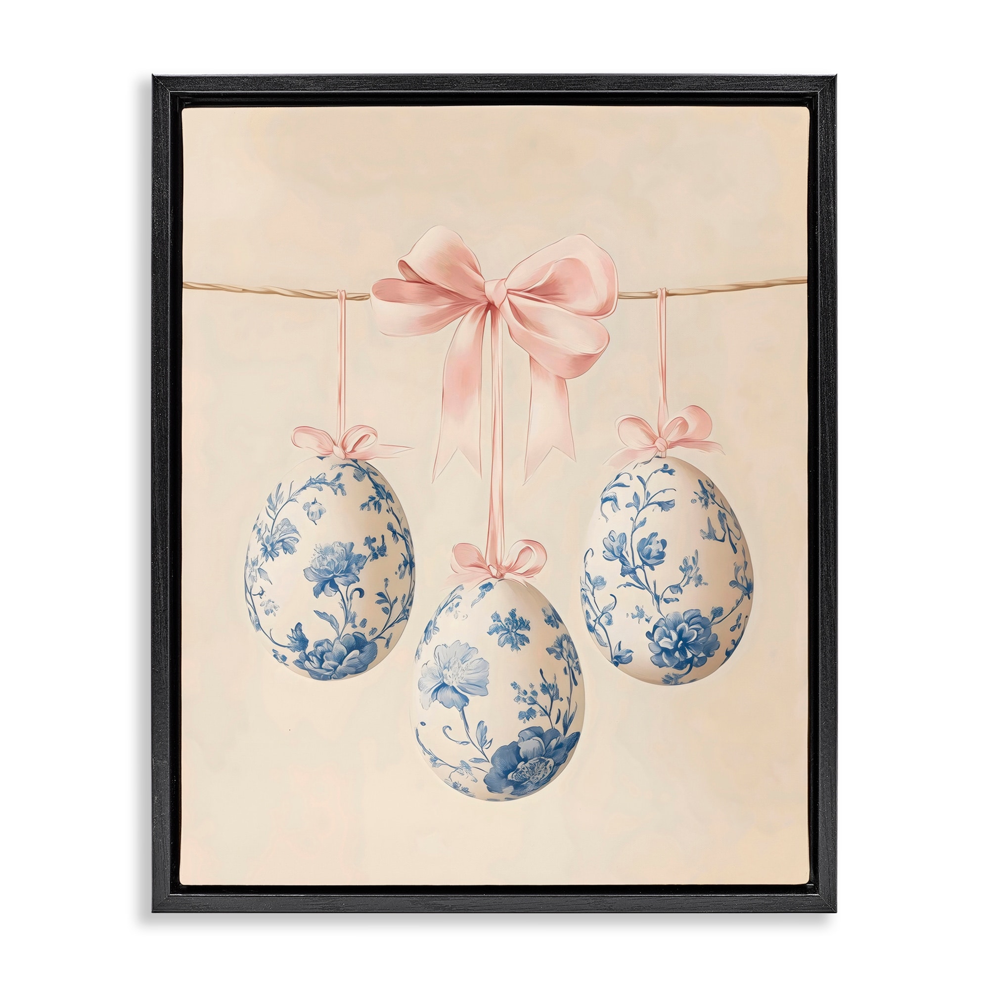 Stupell Blue Floral Coquette Easter Eggs Framed Floater Canvas Wall Art Design By Arlington Prints