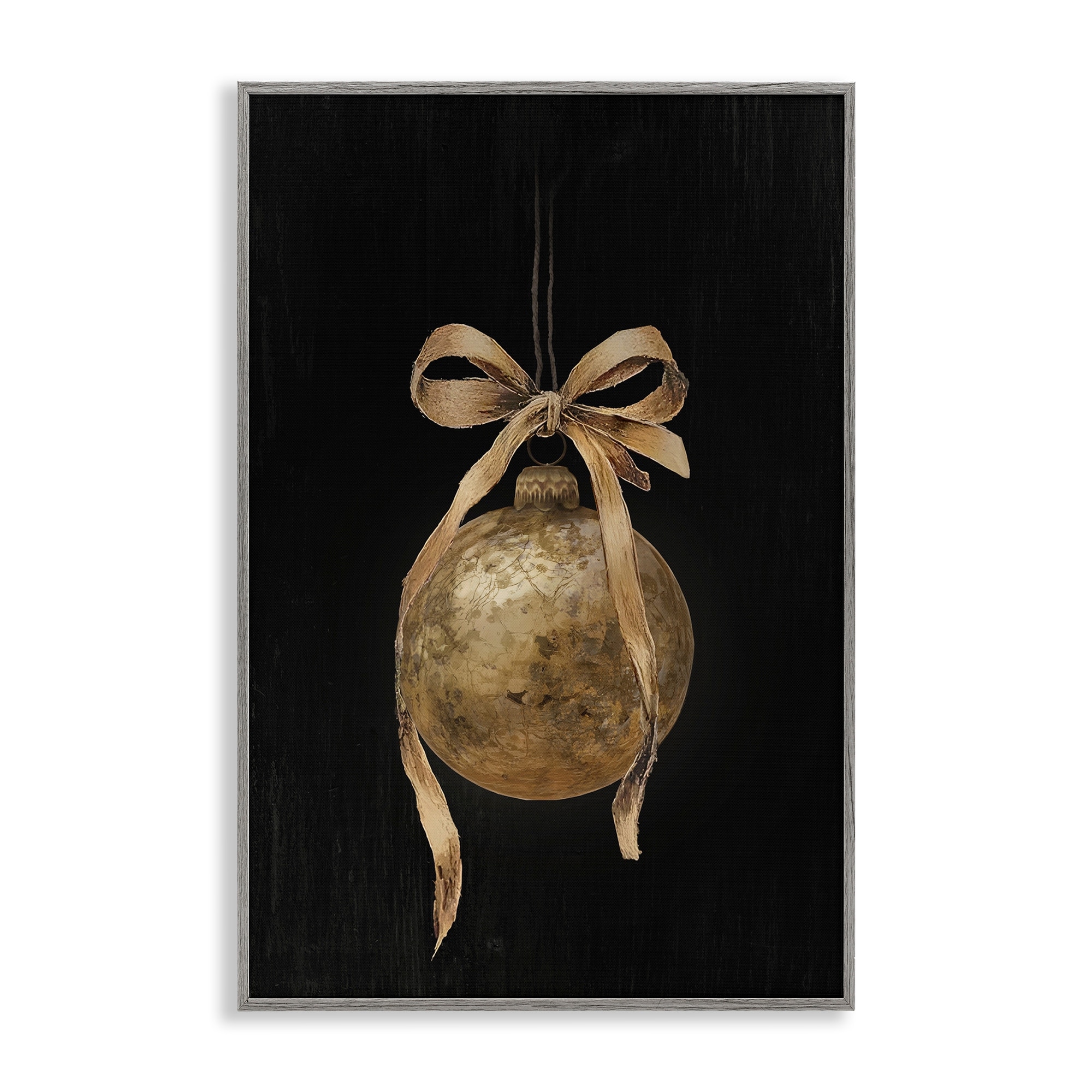 Stupell Vintage Holiday Ornament on Black Framed Giclee Art Design By Lettered and Lined
