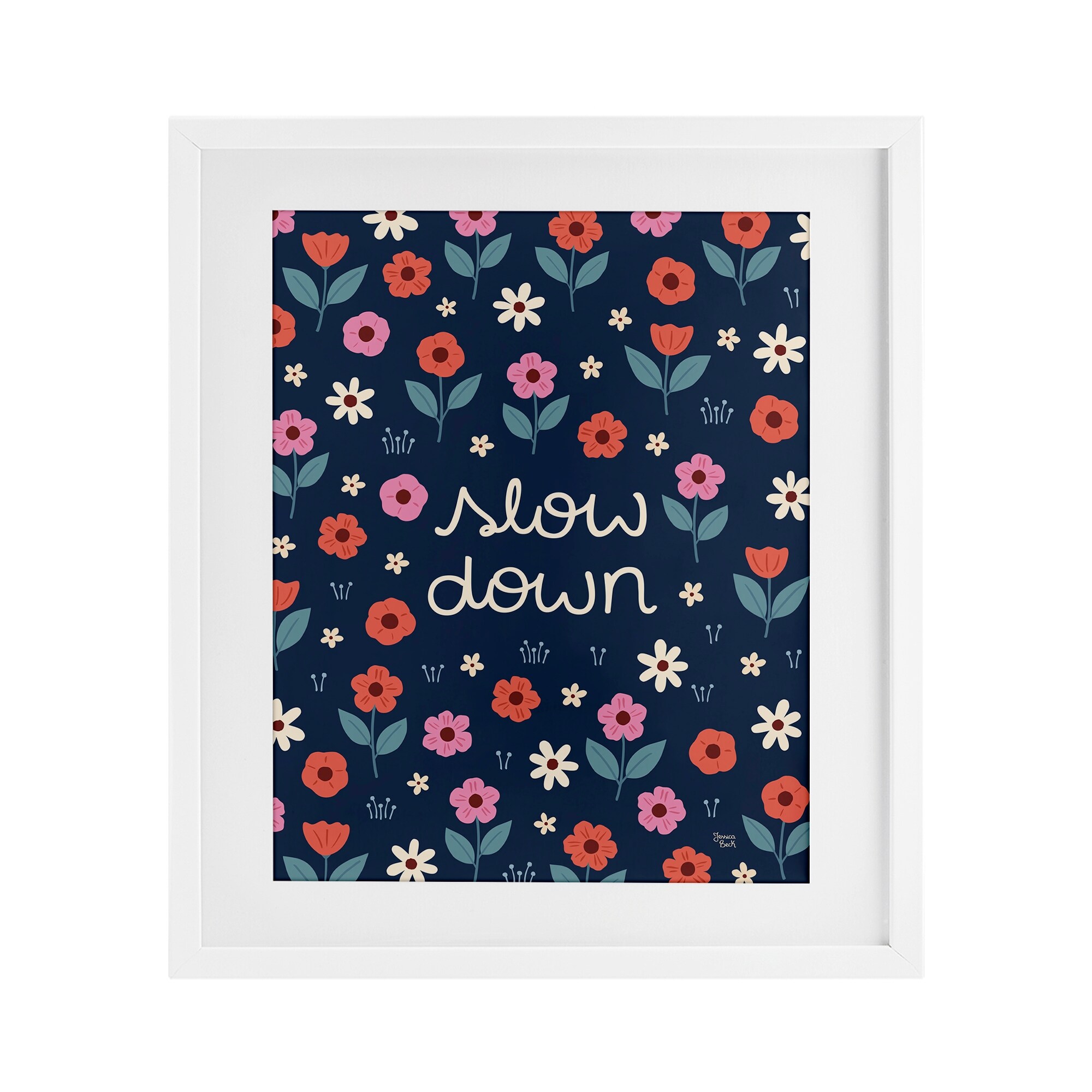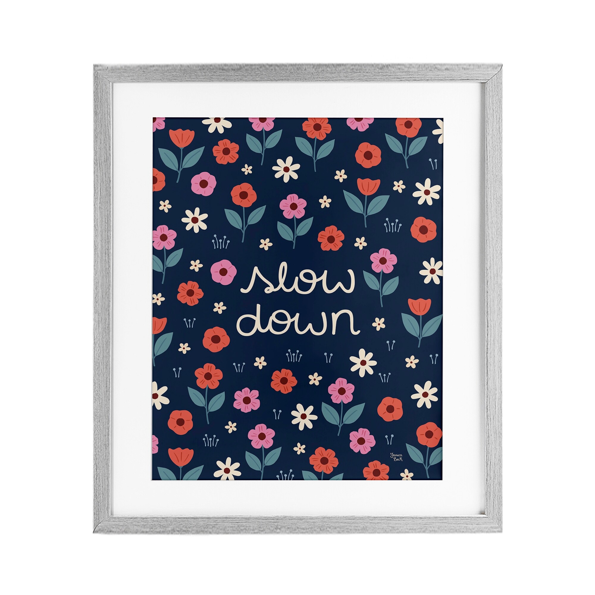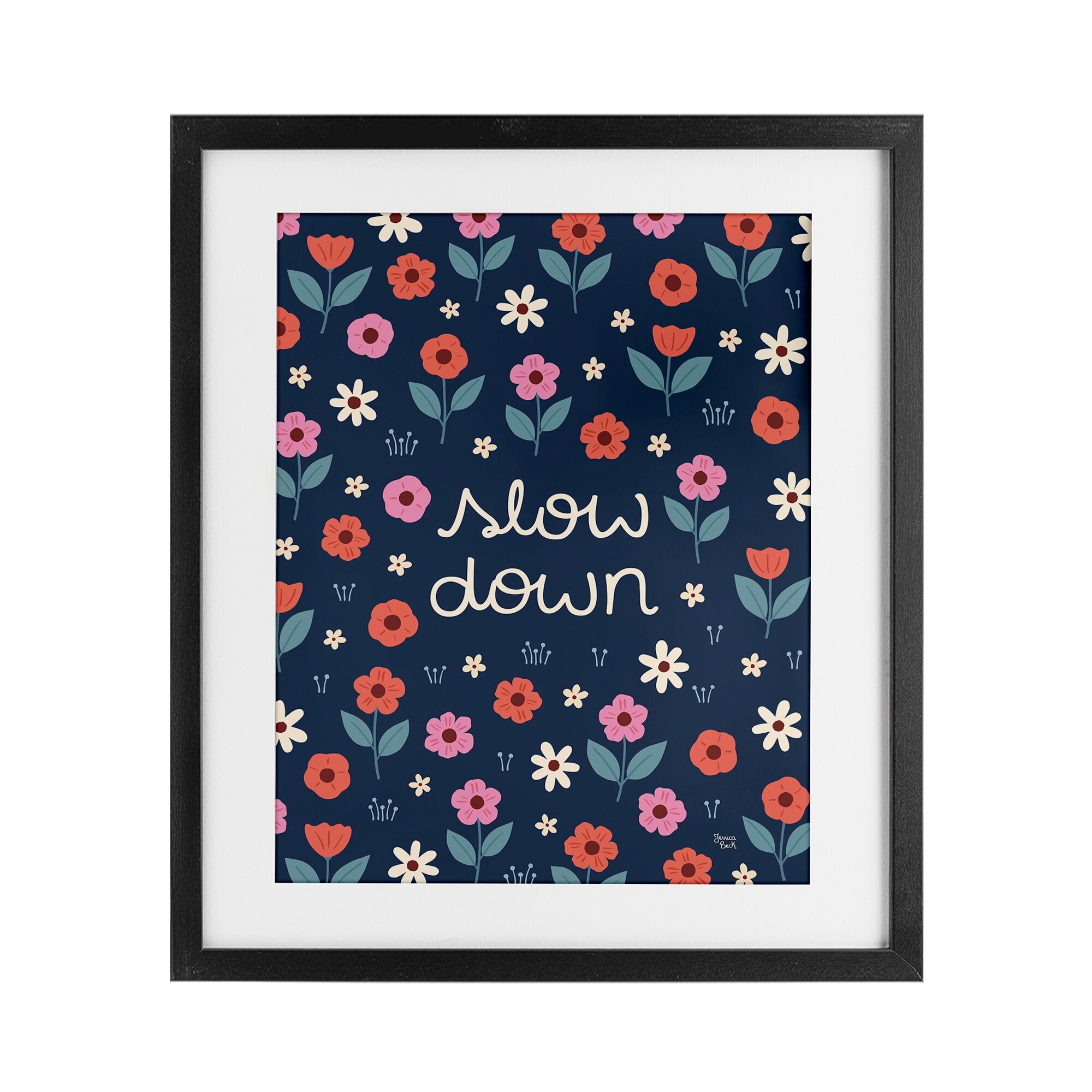 Stupell Slow Down on Bright Florals Under Glass Framed Design By Jessica Beck