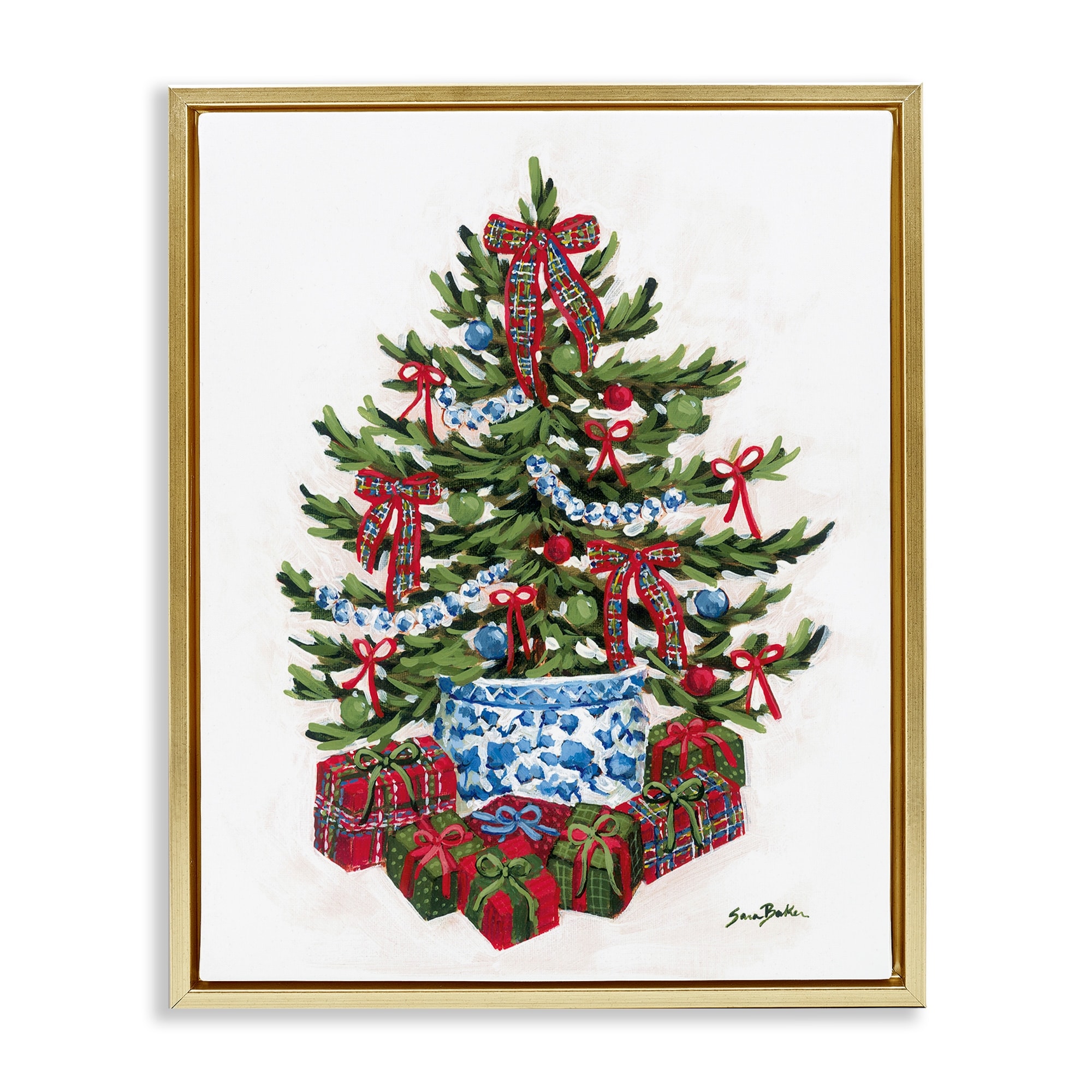 Stupell Festive Celebration Tree Framed Floater Canvas Wall Art Design By Sara Baker