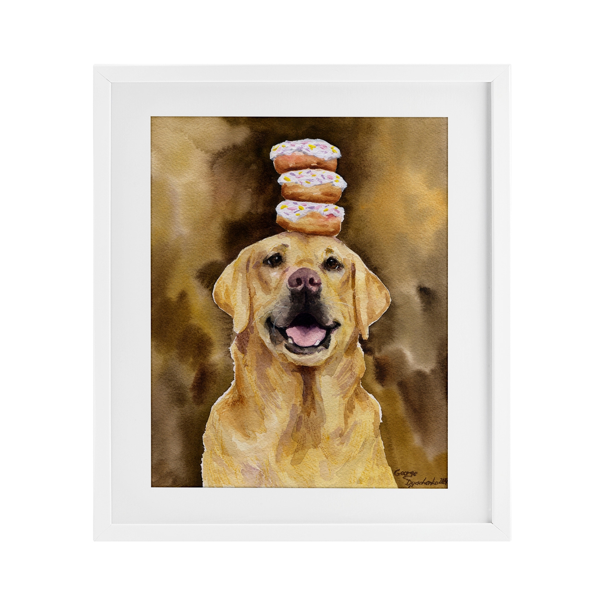 Stupell Happy Golden Retriever with Donuts Under Glass Framed Design By George Dyachenko