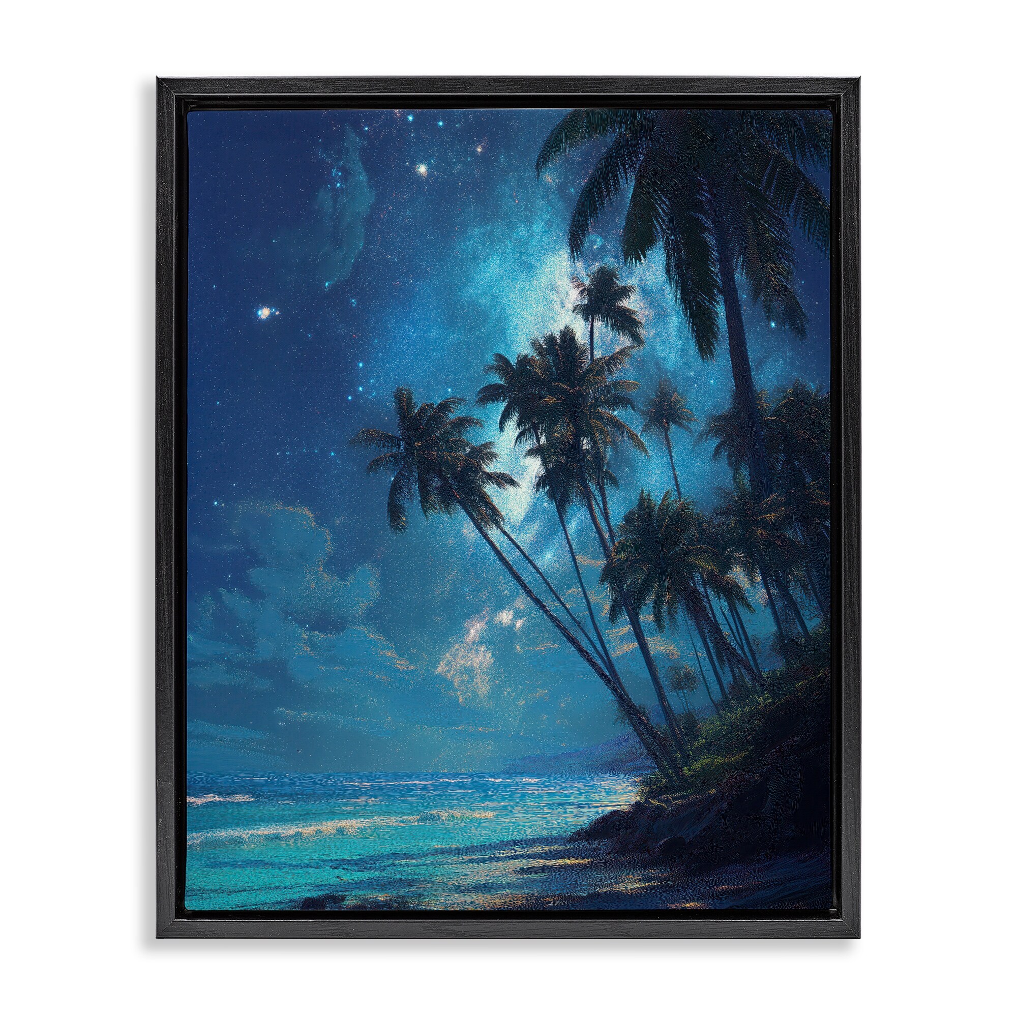 Stupell Moonlit Beach Palm Trees Framed Floater Canvas Wall Art Design By Ziwei Li
