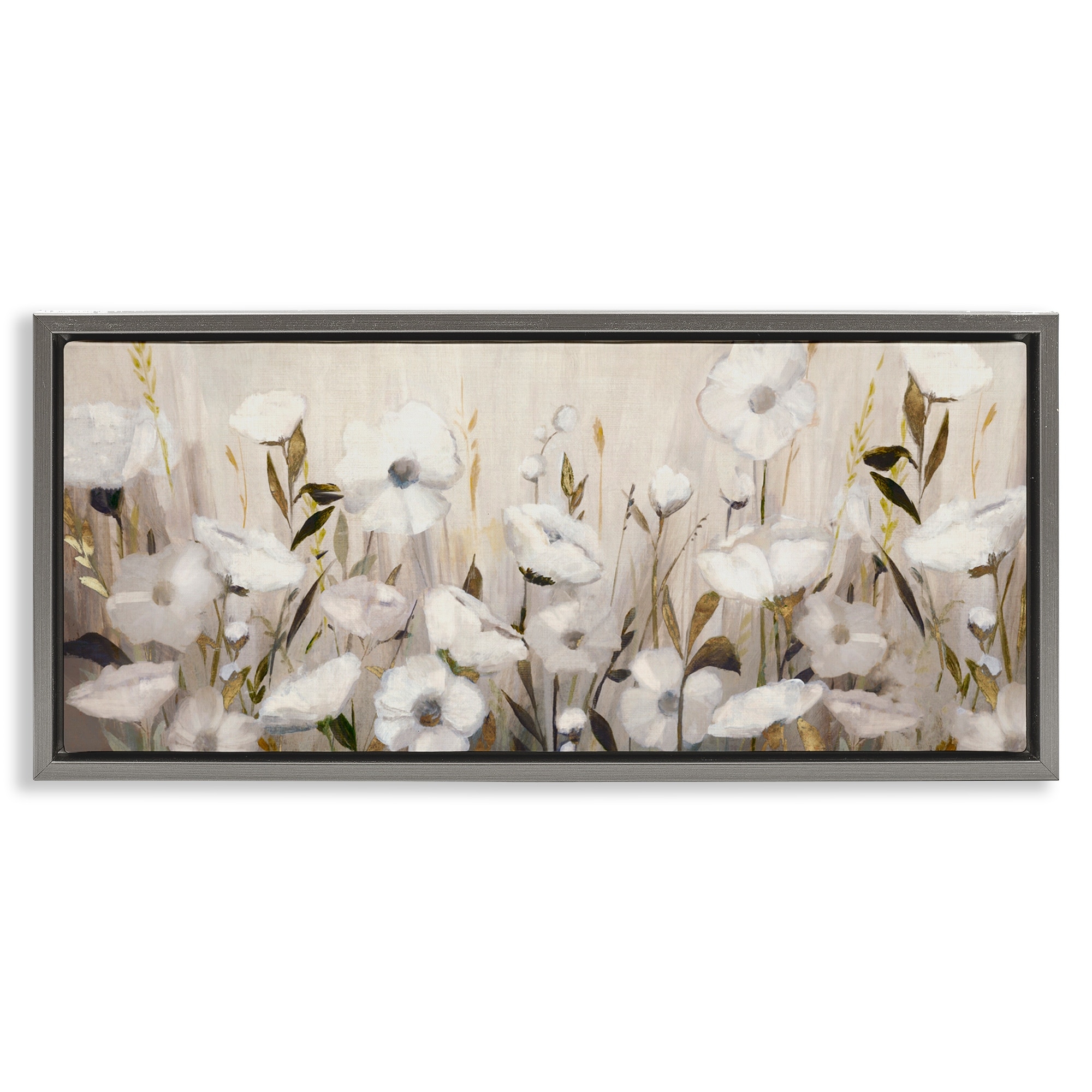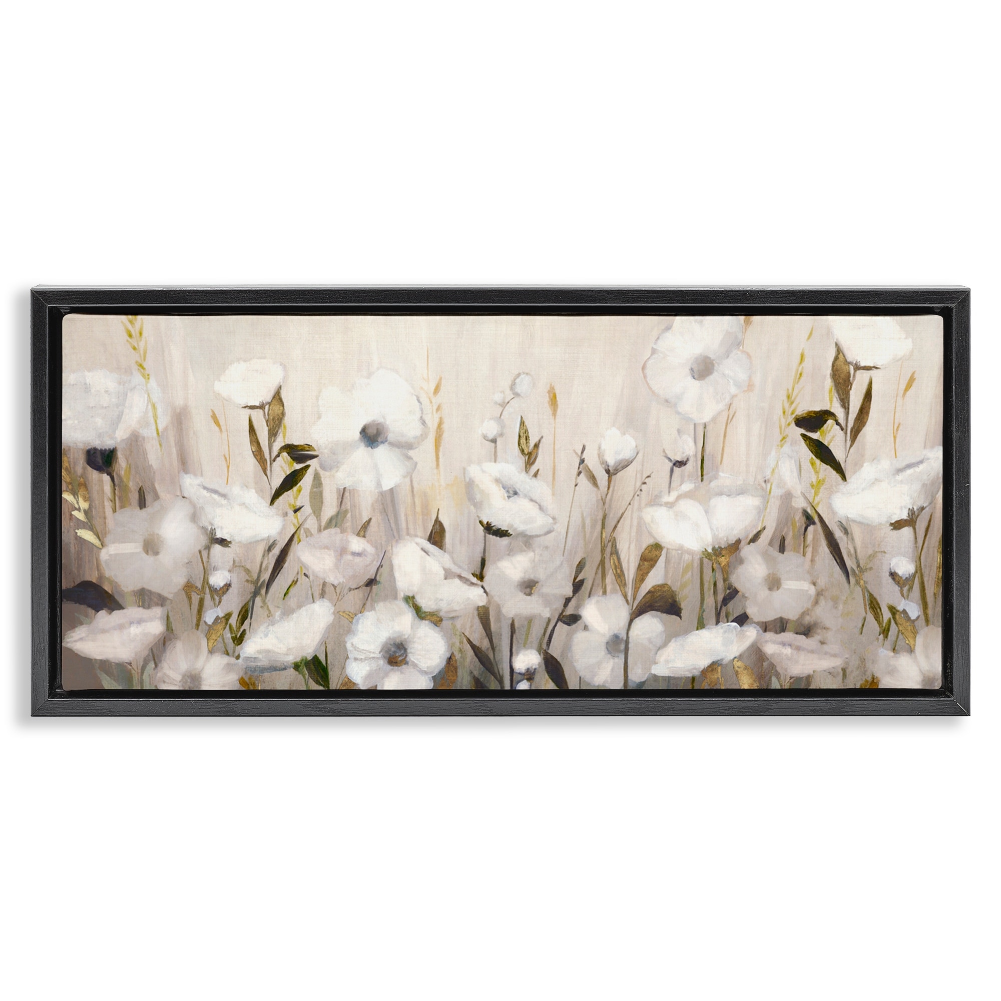 Stupell Whispers Of Gold Flowers Framed Floater Canvas Wall Art Design By Hannah Dawson