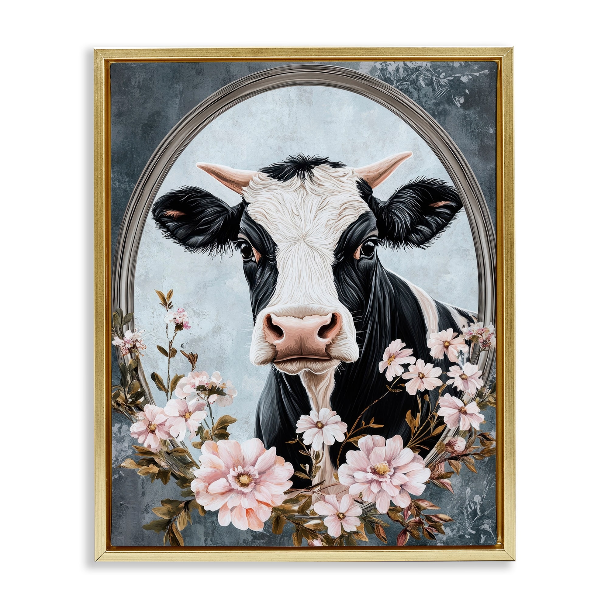 Stupell Flower Horned Cow Portrait Framed Floater Canvas Wall Art Design By Petal Prints Design