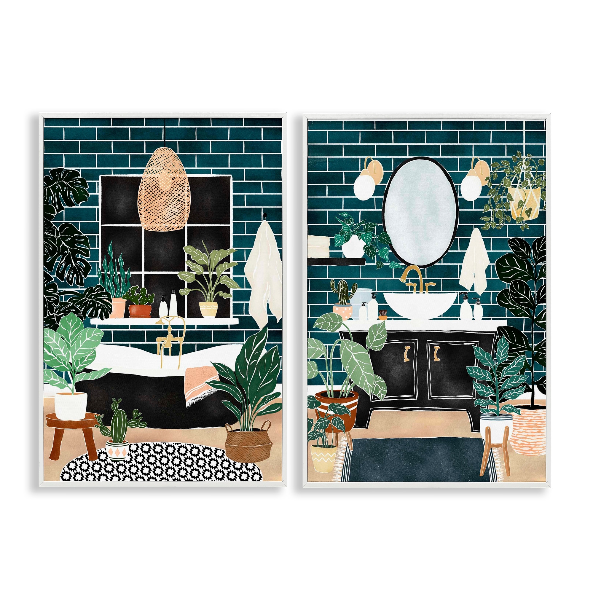 Stupell Modern Bathroom with House Plants Framed Giclee Art Design By JJ Design House LLC (Set of 2)