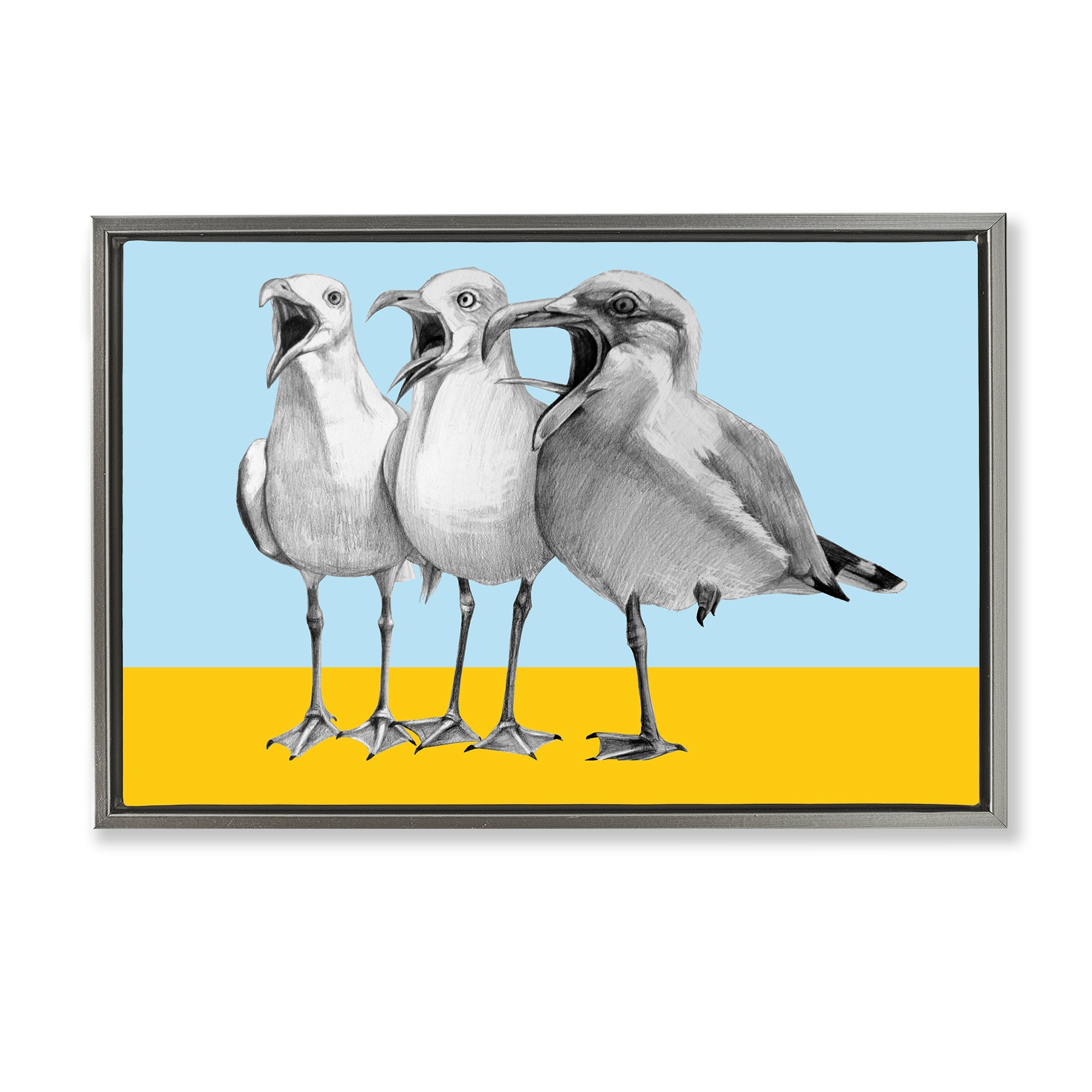 Stupell Seagulls with Blocked Hues Framed Floater Canvas Wall Art Design By Violeta Vollmer