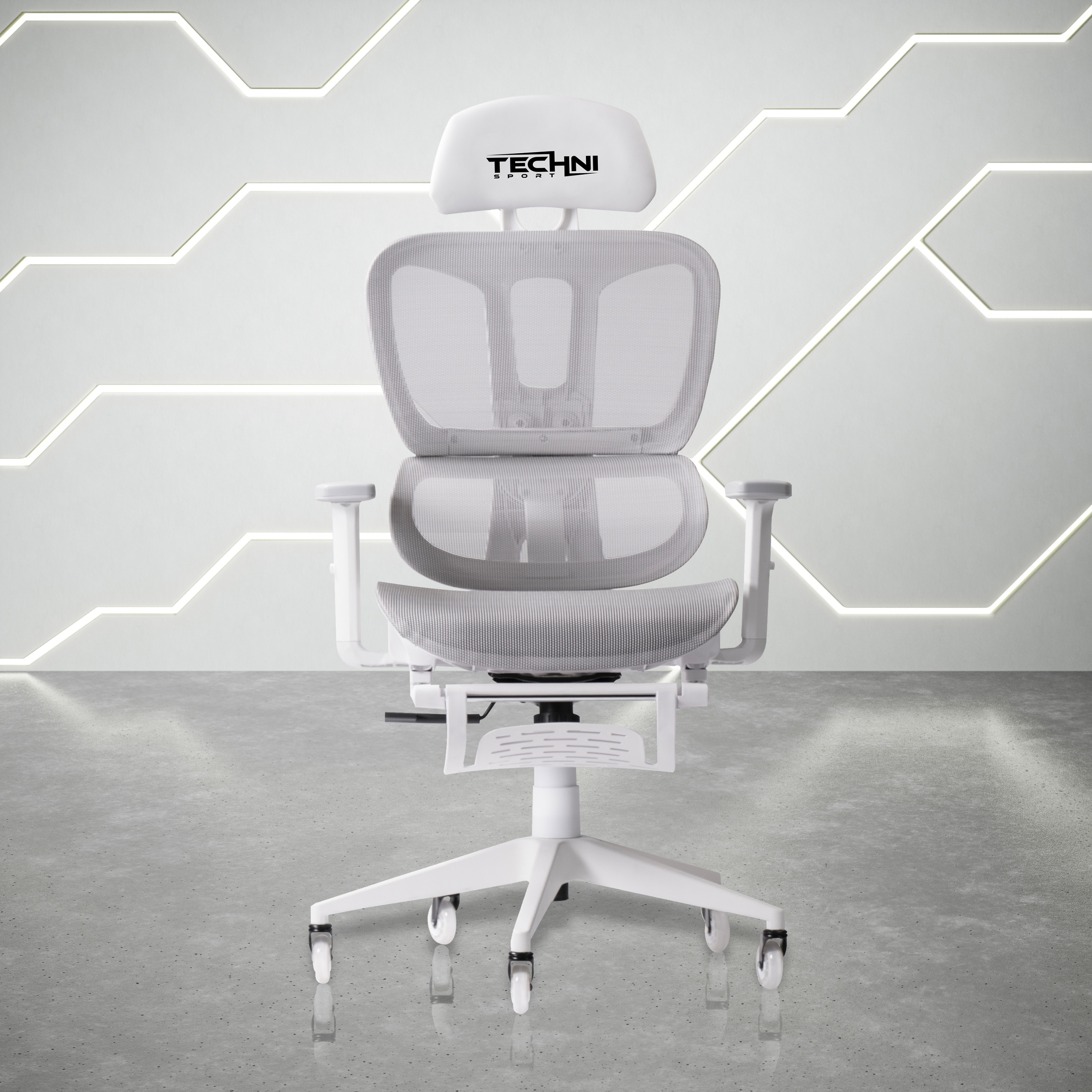 White Mesh Gaming Chair with Footrest Adjustable Ergonomic Office Chair