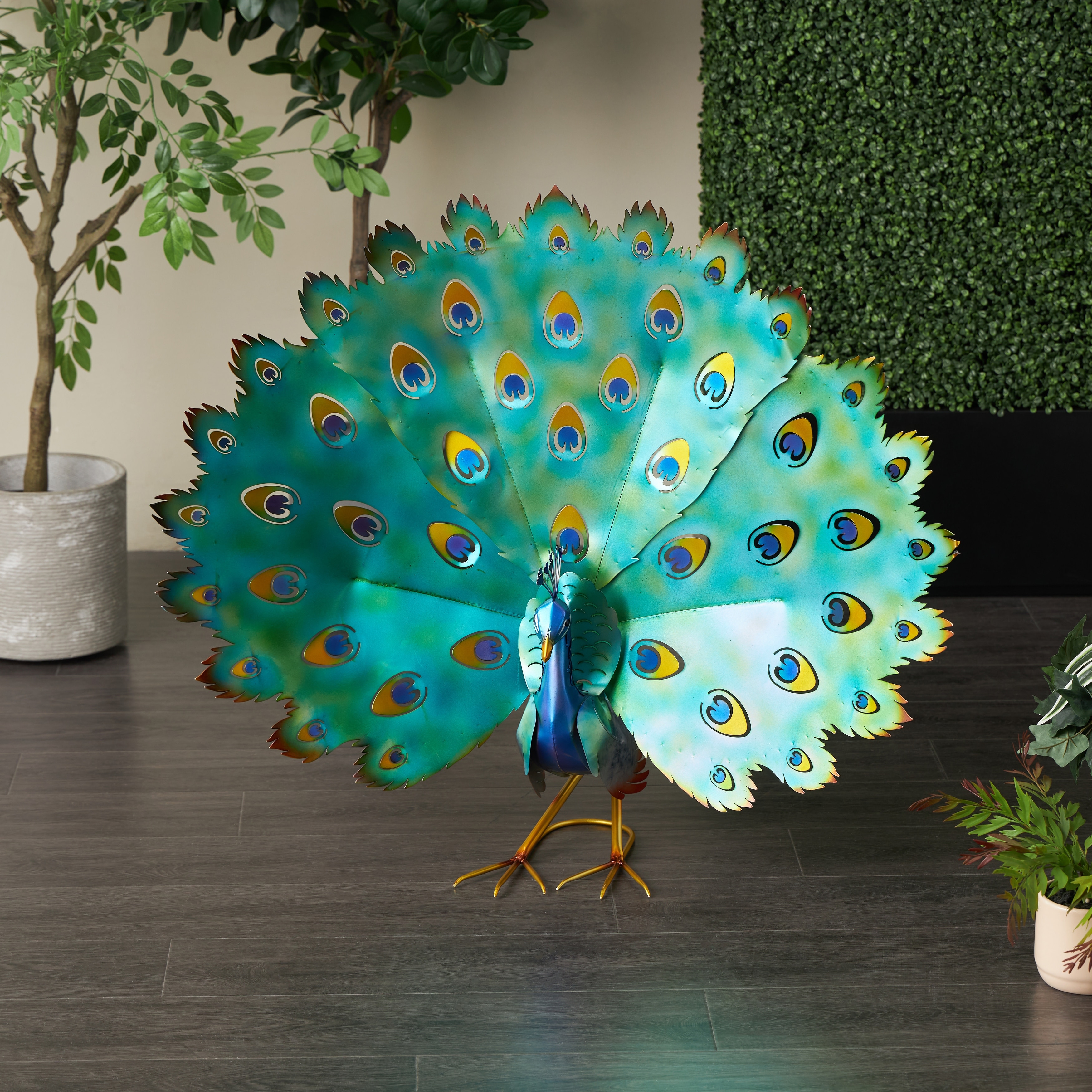 Blue Metal Animal Decorative Garden Sculpture with Gold Legs and Teal Wings