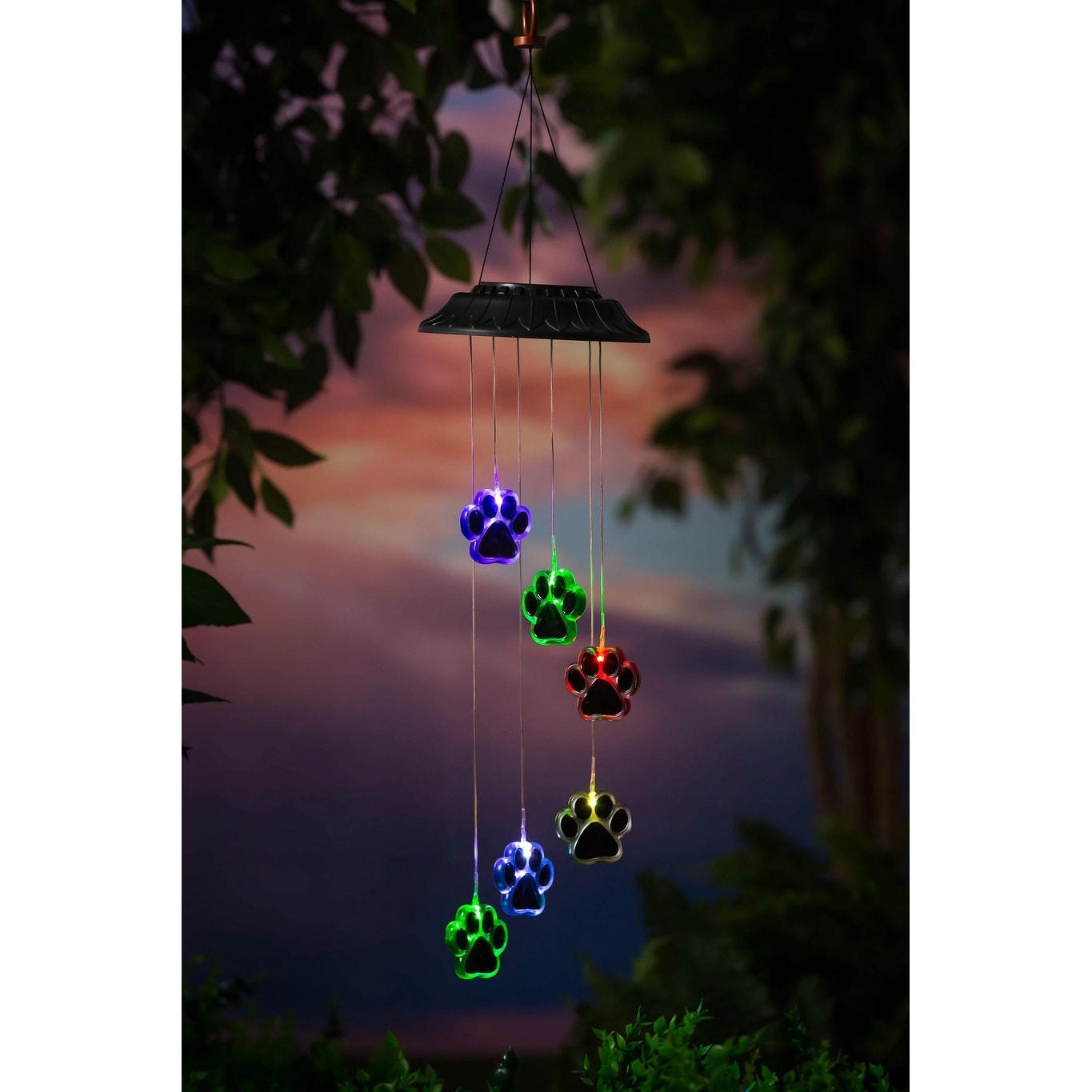26 in. Paw Print Pet Memorial Color Changing Solar Mobile