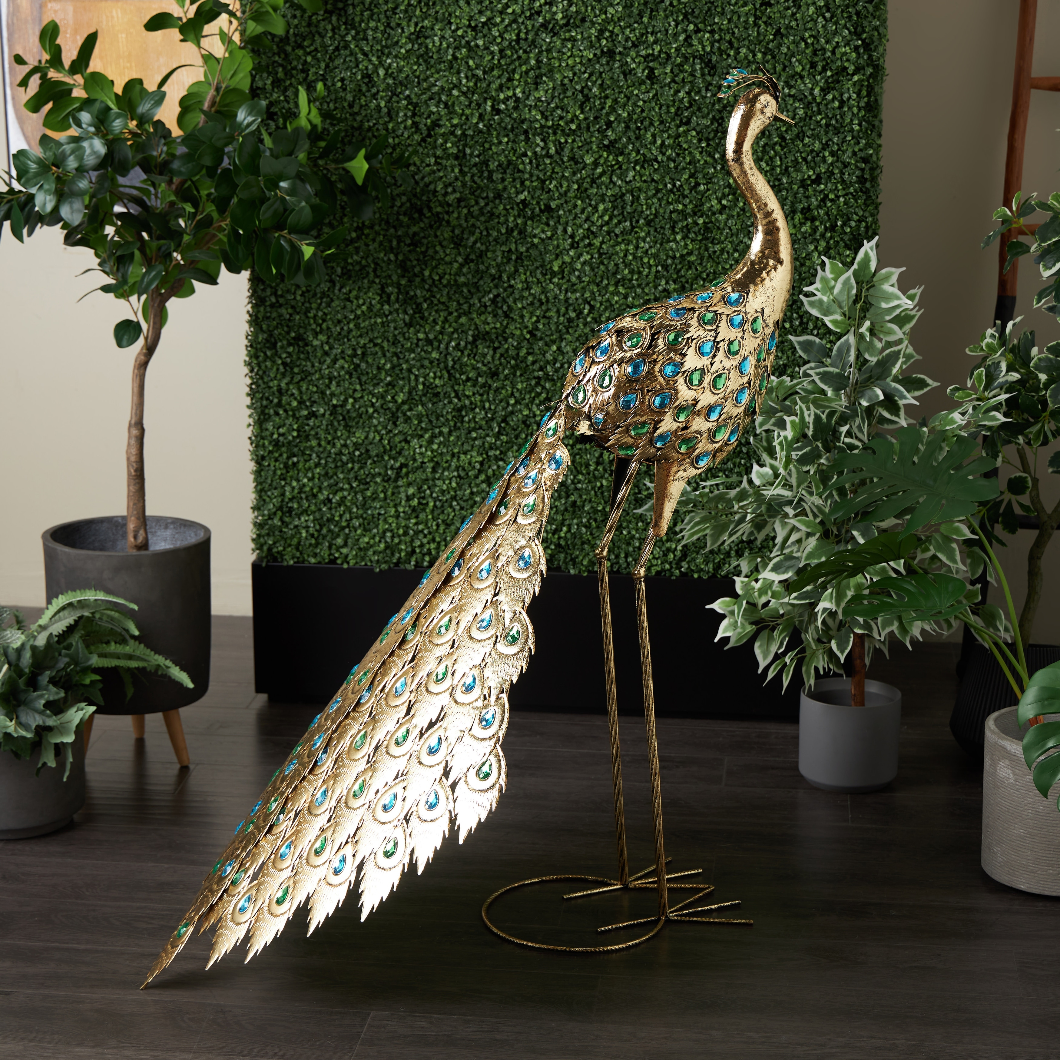 Brass Metal Animal Decorative Garden Sculpture with Blue and Green Jewels