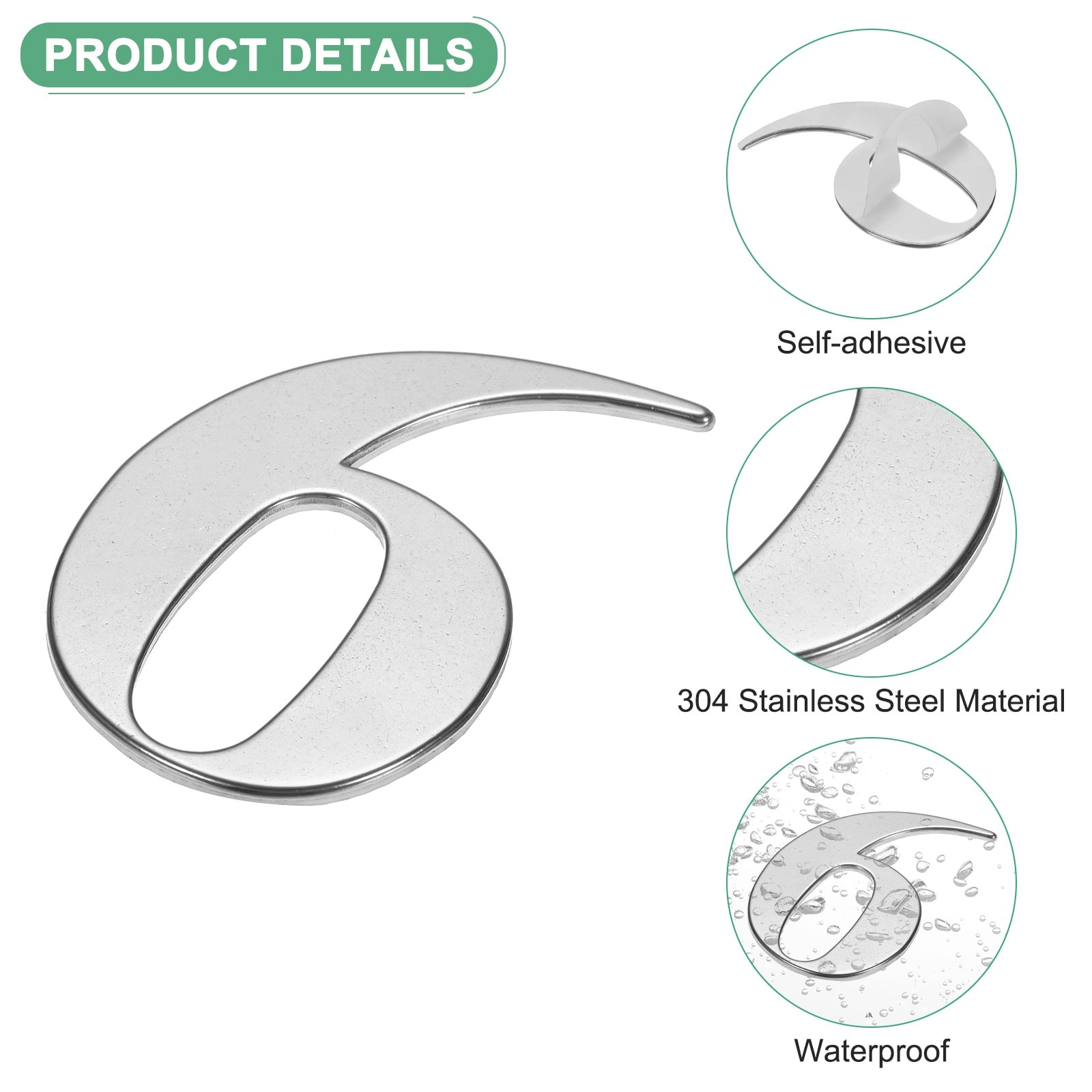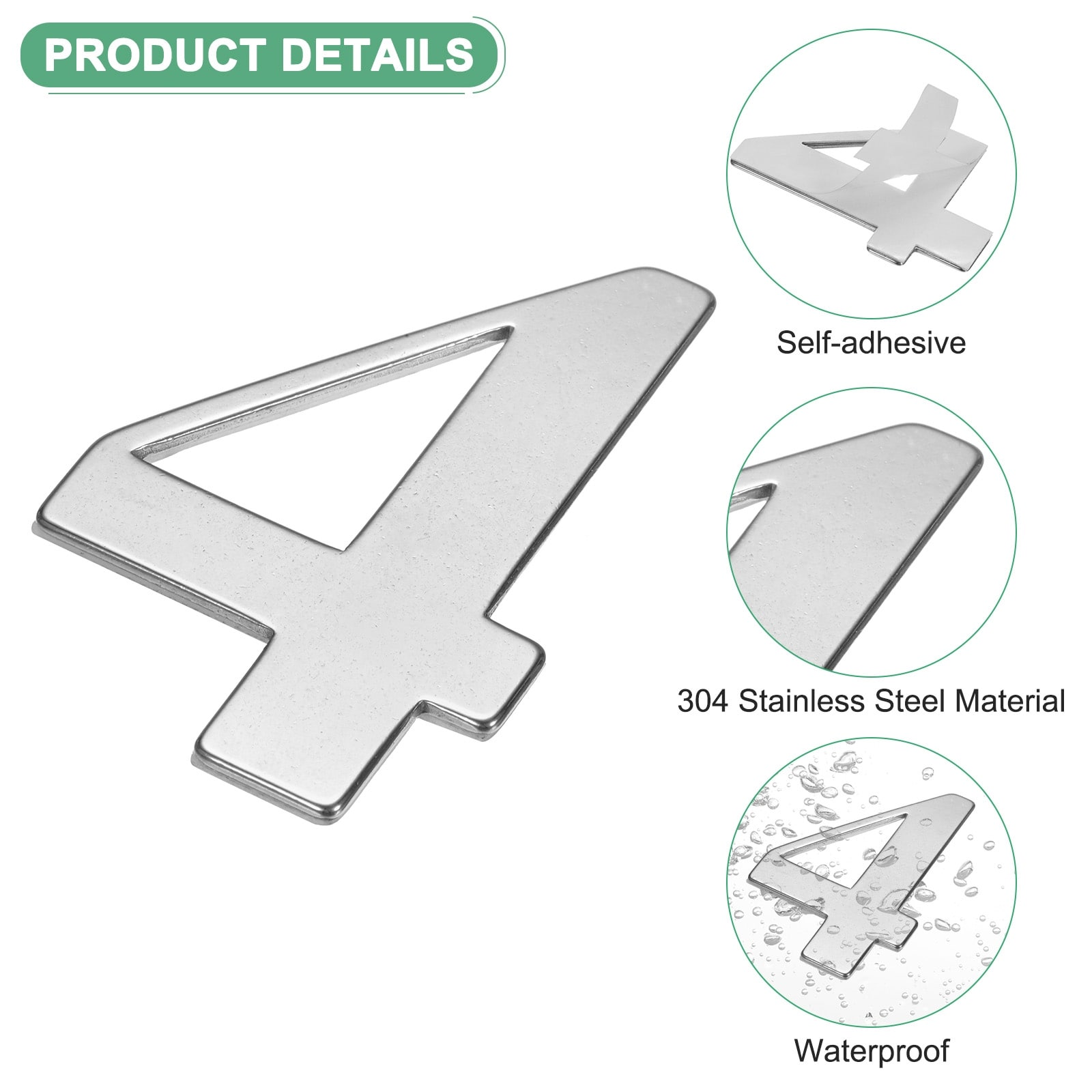 Self-adhesive House Number 304 Stainless Steel Mailbox Number, Address Numbers House Number for Outside - 1 Pcs