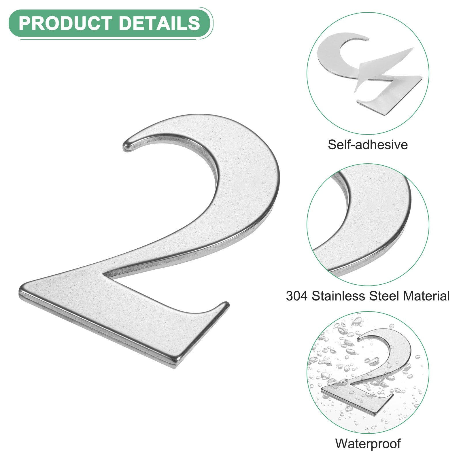 Self-adhesive House Number, 304 Stainless Steel Mailbox Number Address Number, House Number for Outside - 1 Pcs
