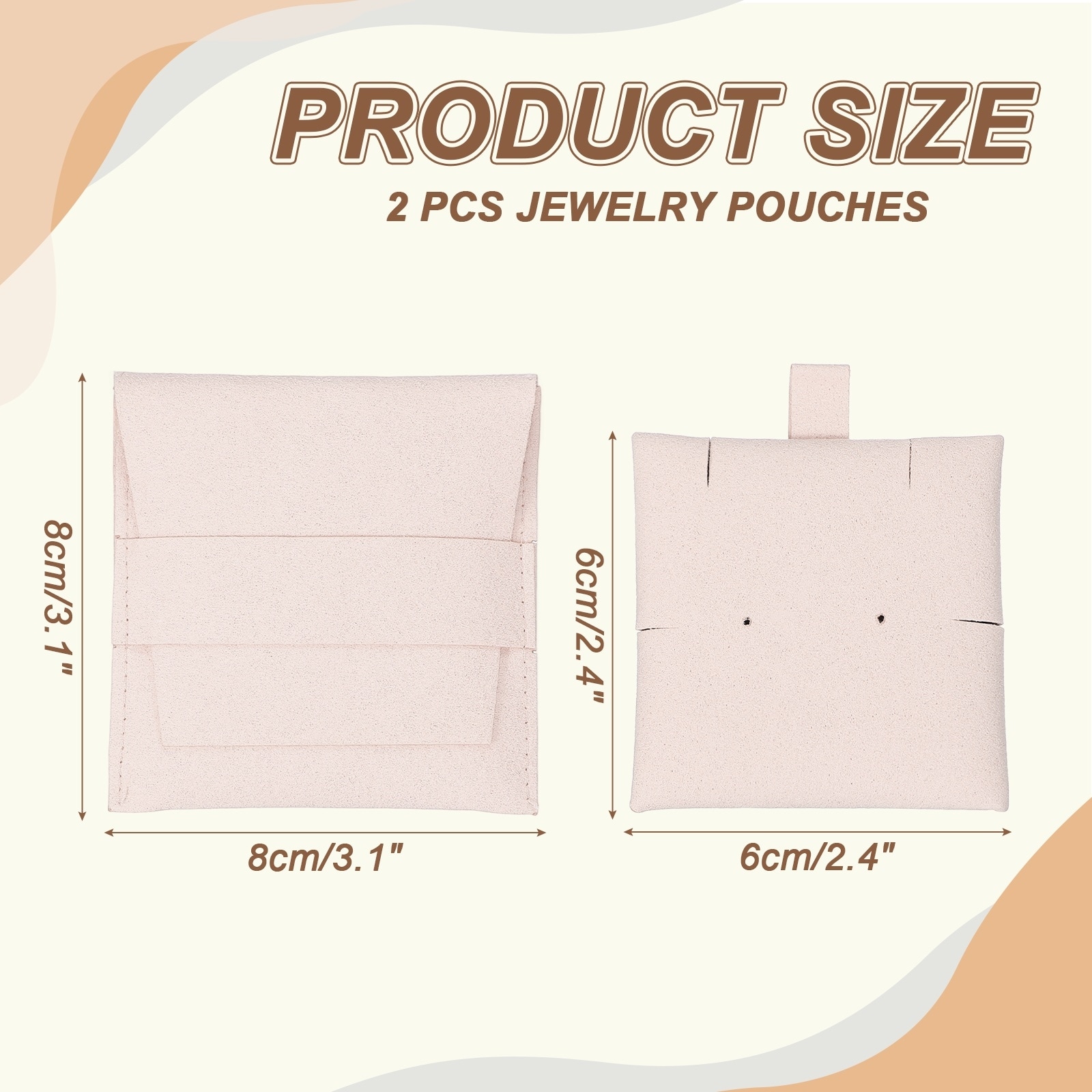 2 Pcs Microfiber Jewelry Pouches with Band, 3.1x3.1 Inch Light Gray - 3.1x3.1 Inch