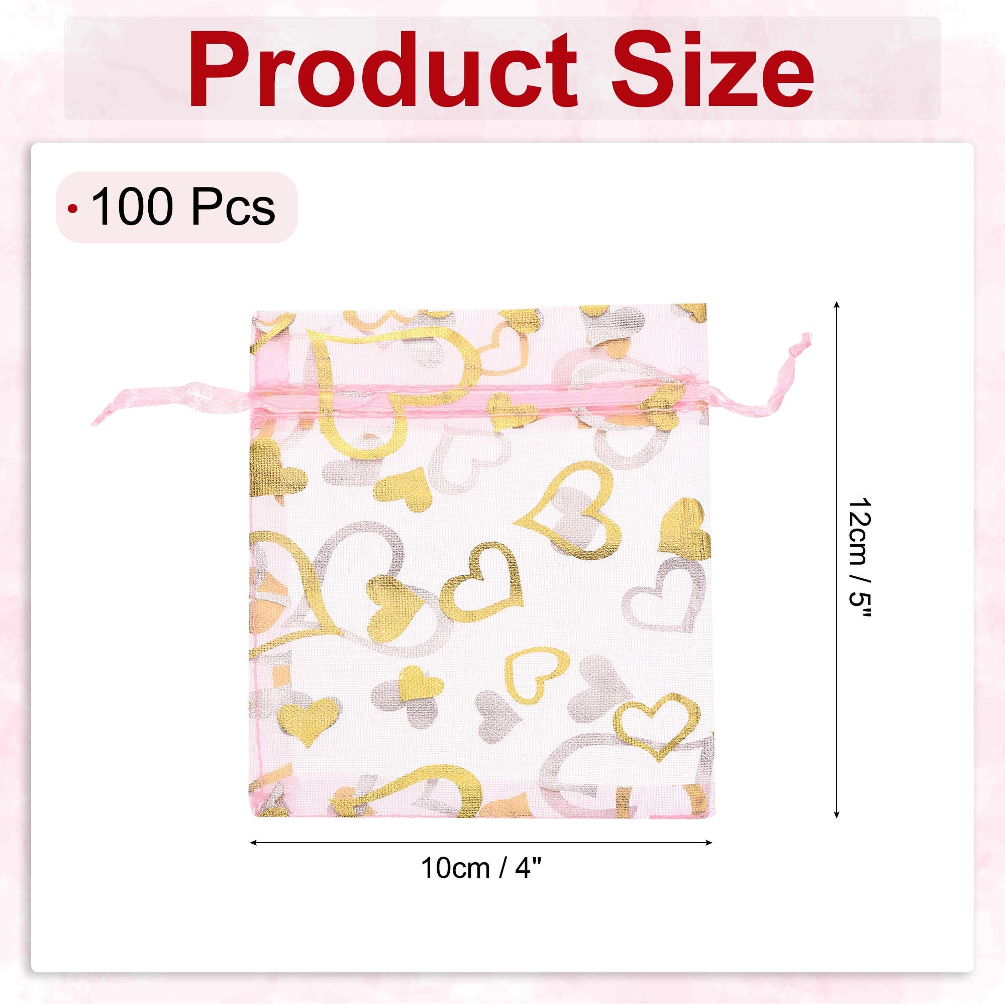 Organza Bag, Sheer Heart Mesh Bags Drawstring Gift Bags Bulk Party Favor Bags