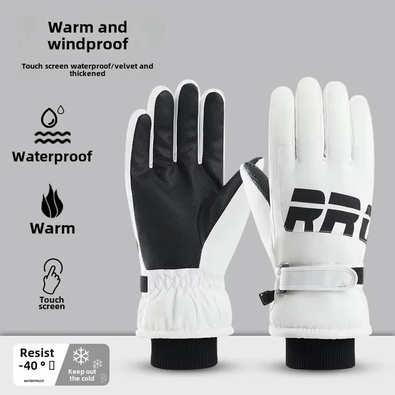 Winter Cycling Gloves Non Slip Touchscreen Gloves Waterproof Snowboard Accessories With Warm Pocket For Men & Women white