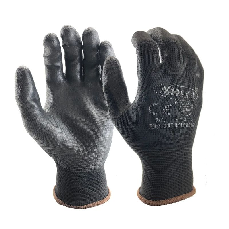 Professional PU Coated Safety Gloves, Nylon Garden & Construction Gloves For Men Women black s