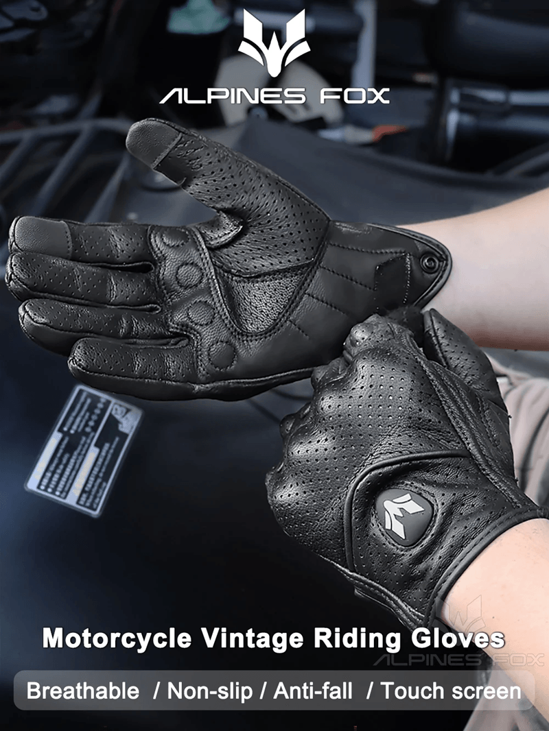Vintage Leather Motorcycle Gloves Men Touchscreen Retro Style l black