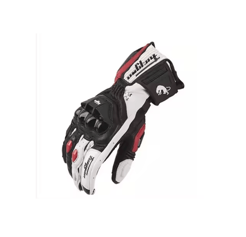 Men Leather Motorcycle Gloves, Windproof Motocross Mittens Touch Screen Motorbike Safety Protection white red xl