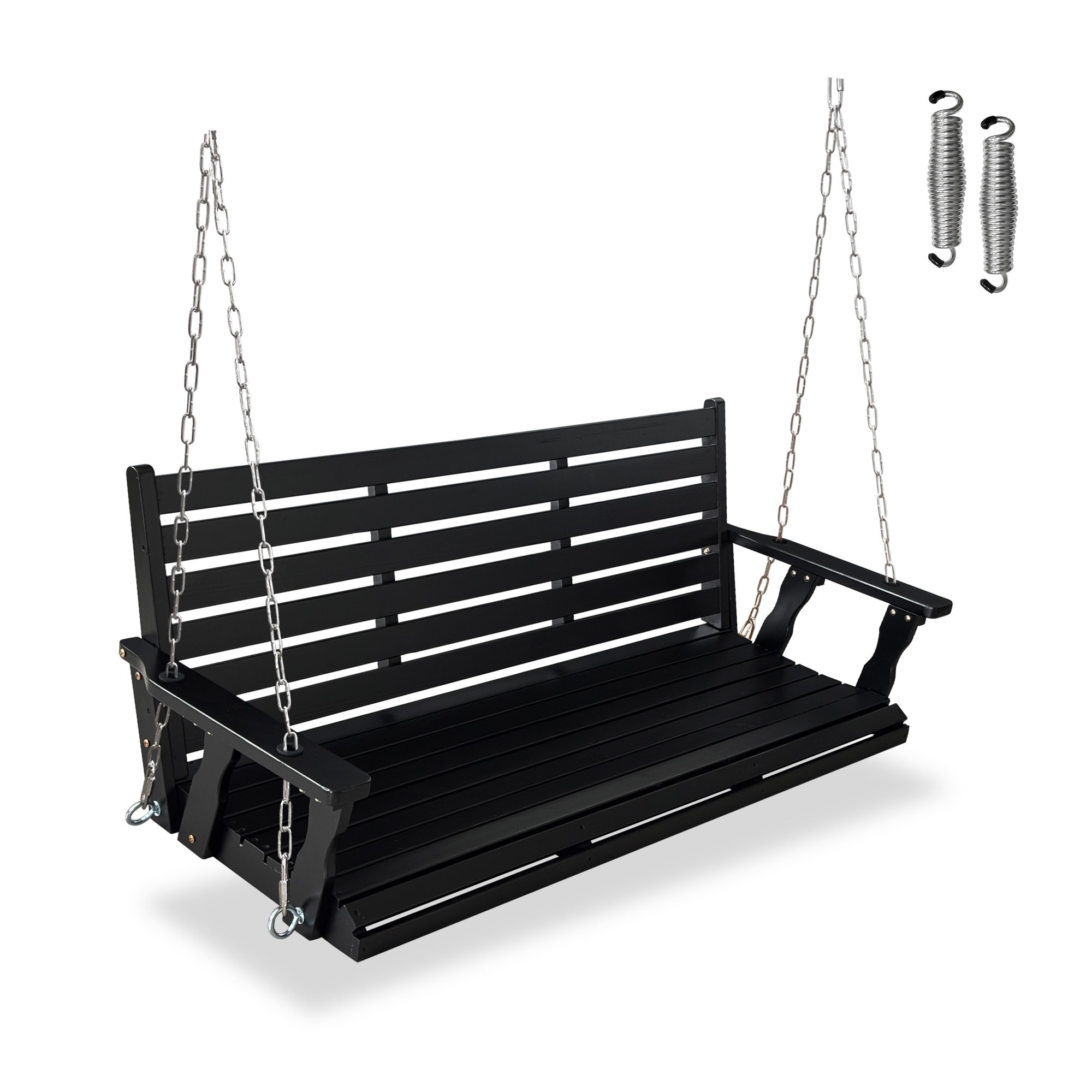 Wooden Porch Swing with Hanging Chains and 7mm Springs for Outdoor Patio Garden Yard