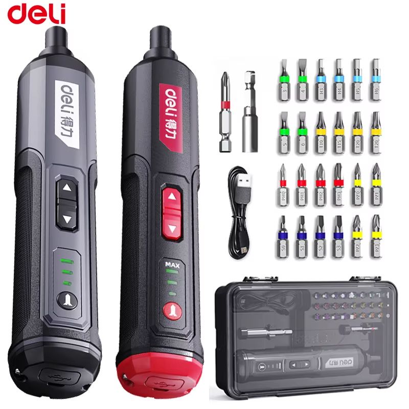DELI Cordless Electric Screwdriver Set 4V 2000mAh Torque Adjustment Multi Function Power Drill Repair Tools Kit dcs166 set2