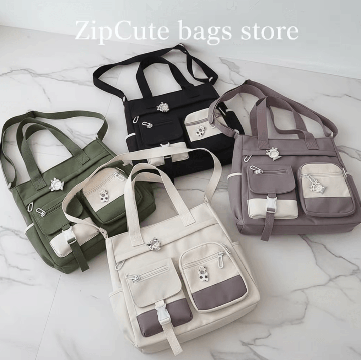 Waterproof Canvas Shoulder Bag Nylon Messenger Crossbody Tote For Women 13.4 X 10.6 X 3.9 Inches black
