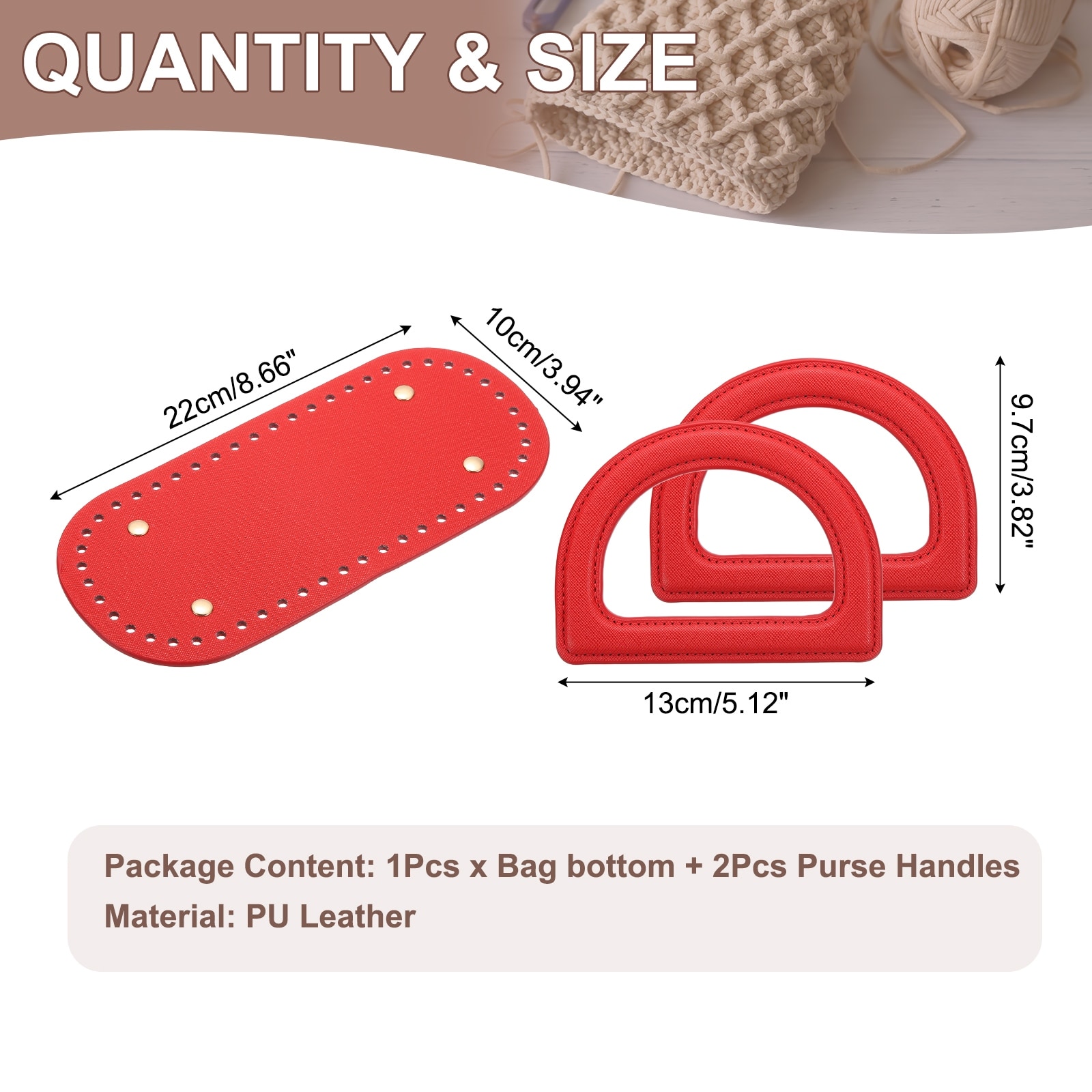 Crochet Bag Making Kit, PU Leather Bag Bottom with 2Pcs D-Shaped Purse Handle Purse Making Supplies for DIY Woven Bag