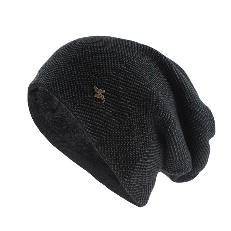 New Unisex Winter Hats, Warm Beanie Cap, Add Fur Lined Design, Casual Maple Leaf Label, Knitted Hats For Men And Women black