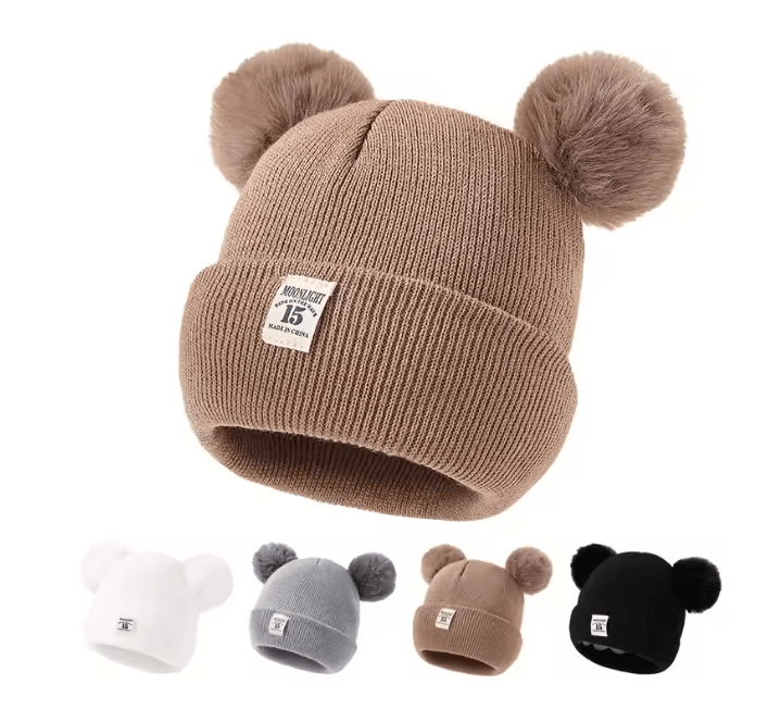 SnugPom Baby Knit Beanie Warm Winter Hat For Boys And Girls khaki 0 3 Years