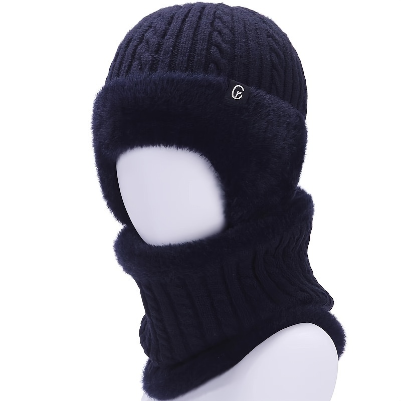 Knitted Cashmere Neck Warm Balaclava Ski Windproof Hat, Winter Fur Cap Mask Set Hooded For Women, Thick Plush Fluffy pink