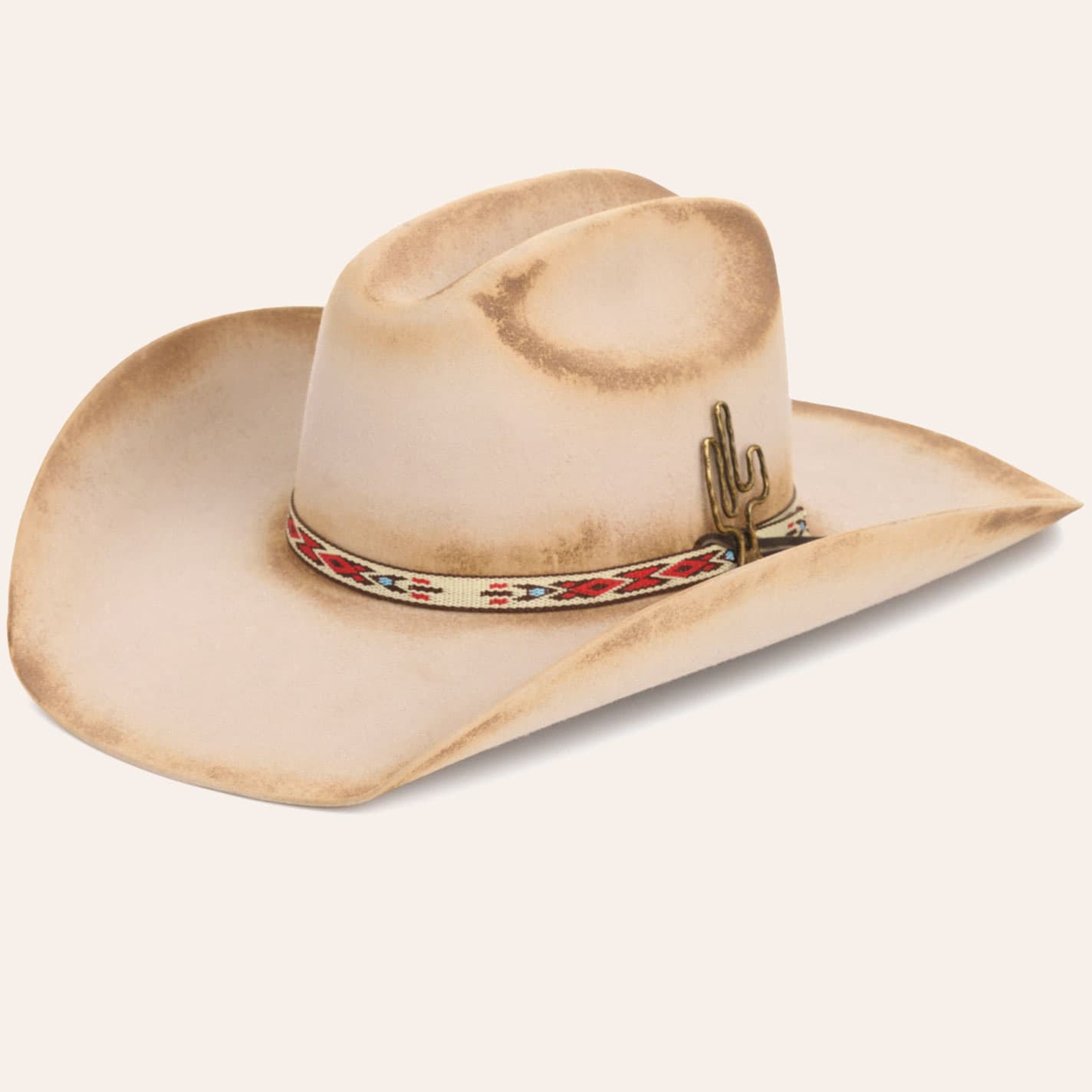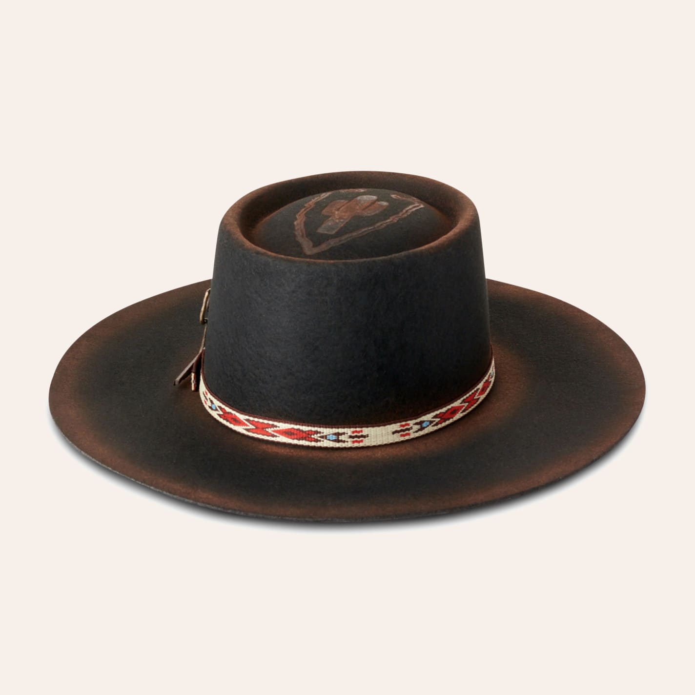 Rockin' C Women's Burned Black Arrowhead with Cactus Pin and Aztec Ribbon Band Wool Hat - L - From Cavender's