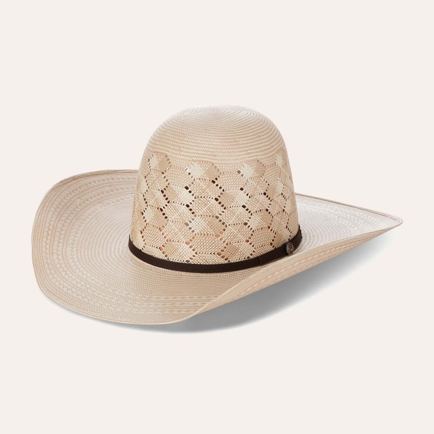 Rafter C Ivory and Tan Shantung Honeycomb Vent Open Crown Straw Cowboys Hat - Men's - 67/8 - From Cavender's