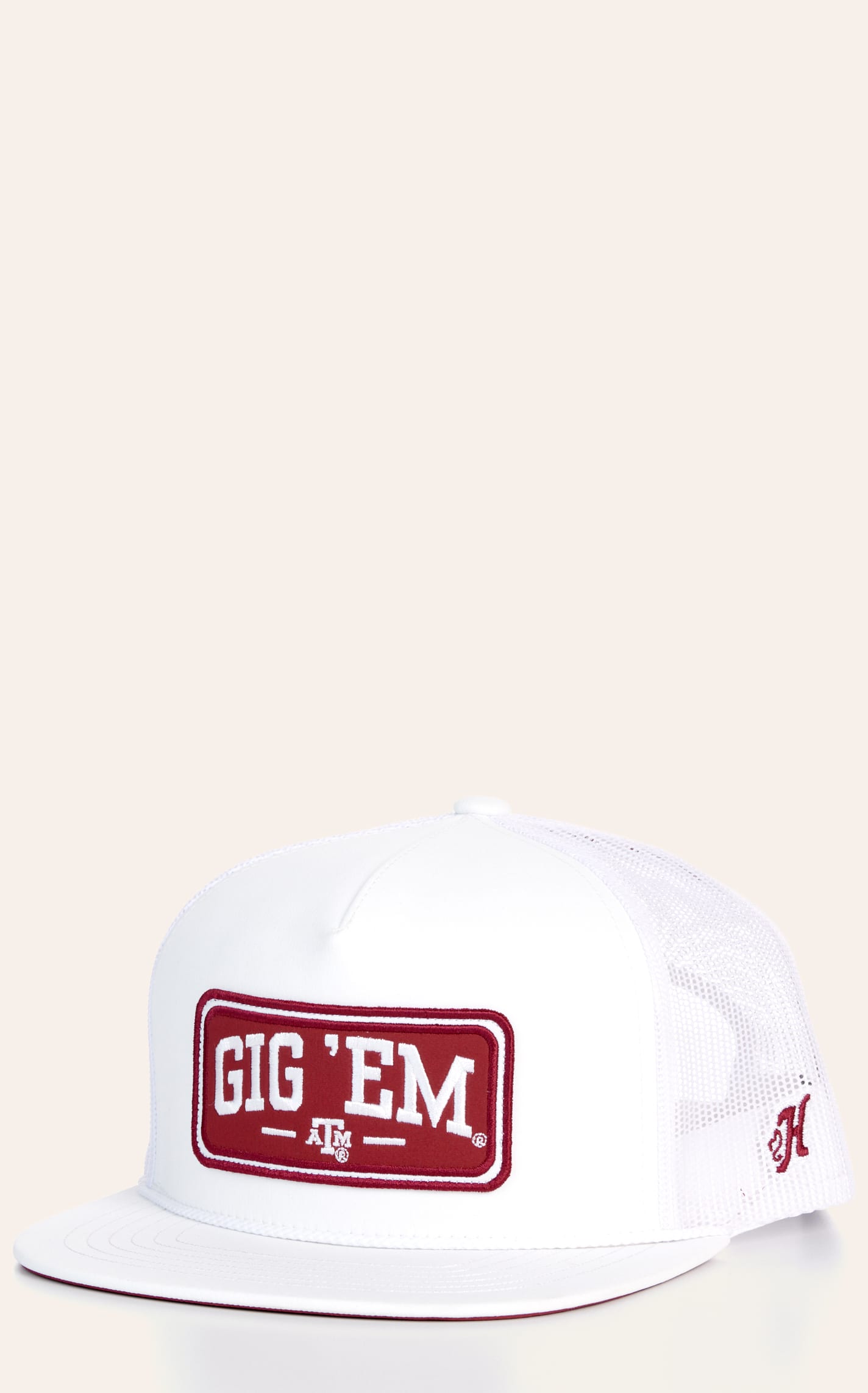 Hooey Collegiate Collection White Texas A&M Gig 'Em Logo Patch Cap - NOSZ - From Cavender's