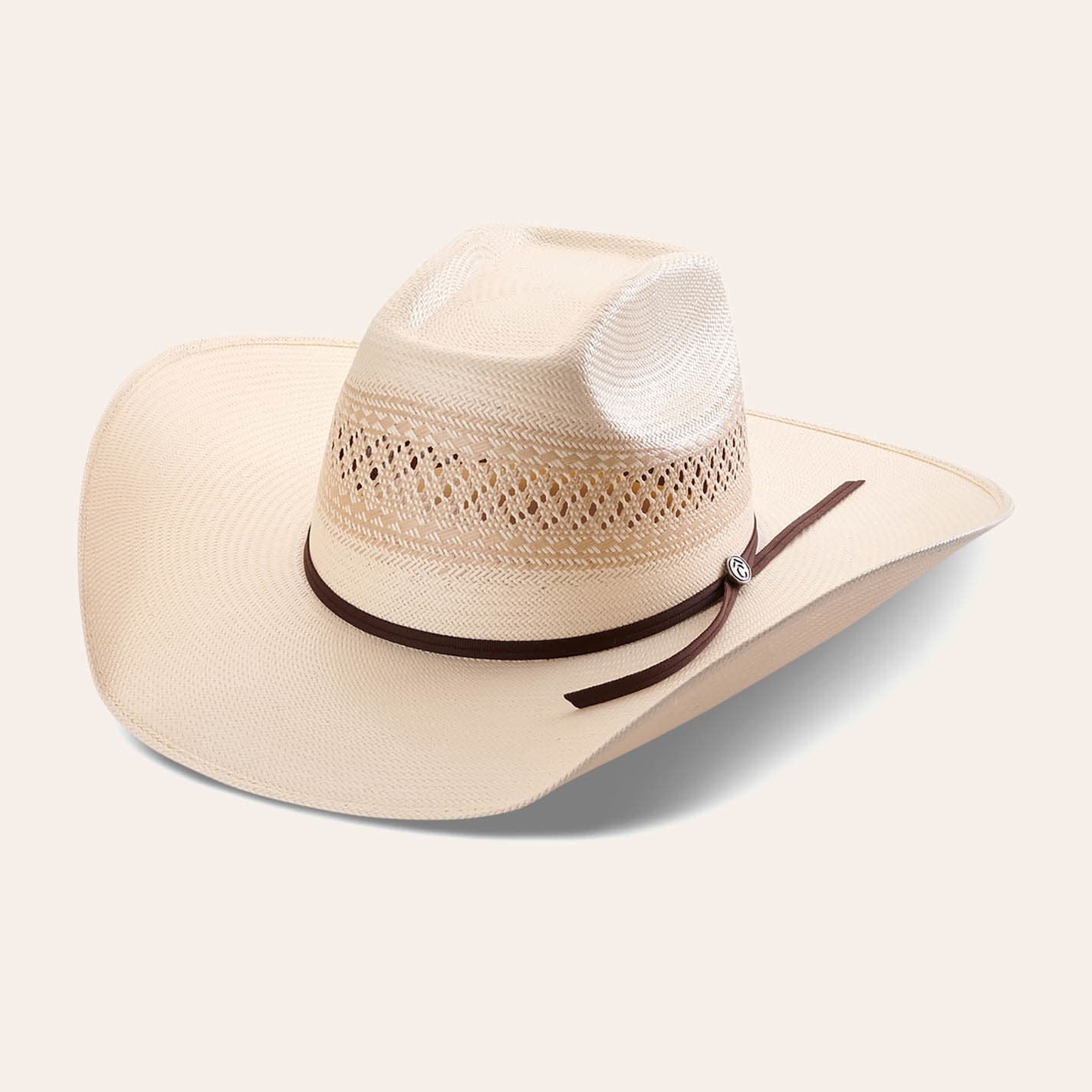 Rafter C Men's Ivory and Brown Vented Open Crown Bangora Straw Cowboy Hat - 71/2 - From Cavender's